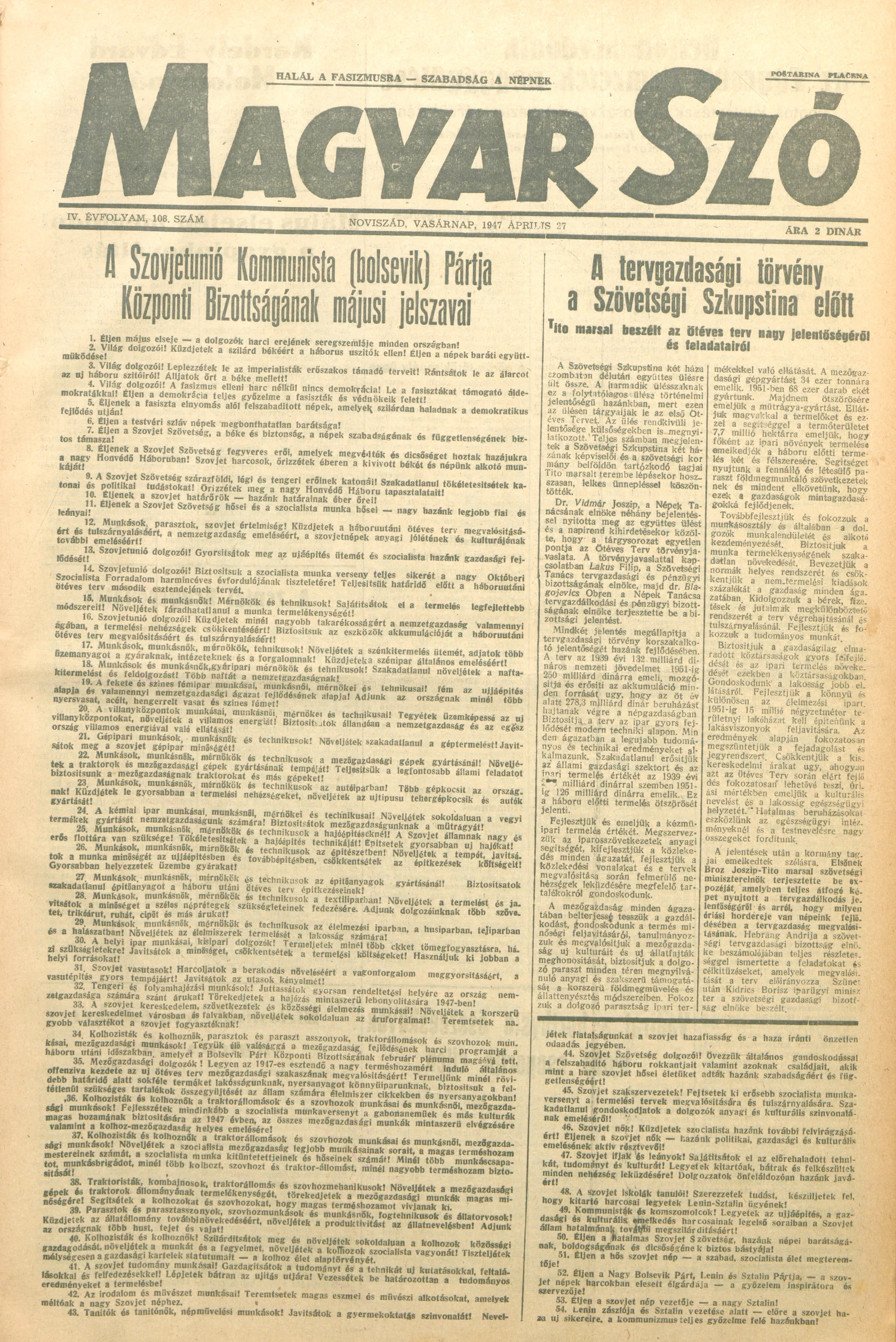 Magyar Szó, 4. évf. 1947. április 27. 108. sz. 1–6. oldal