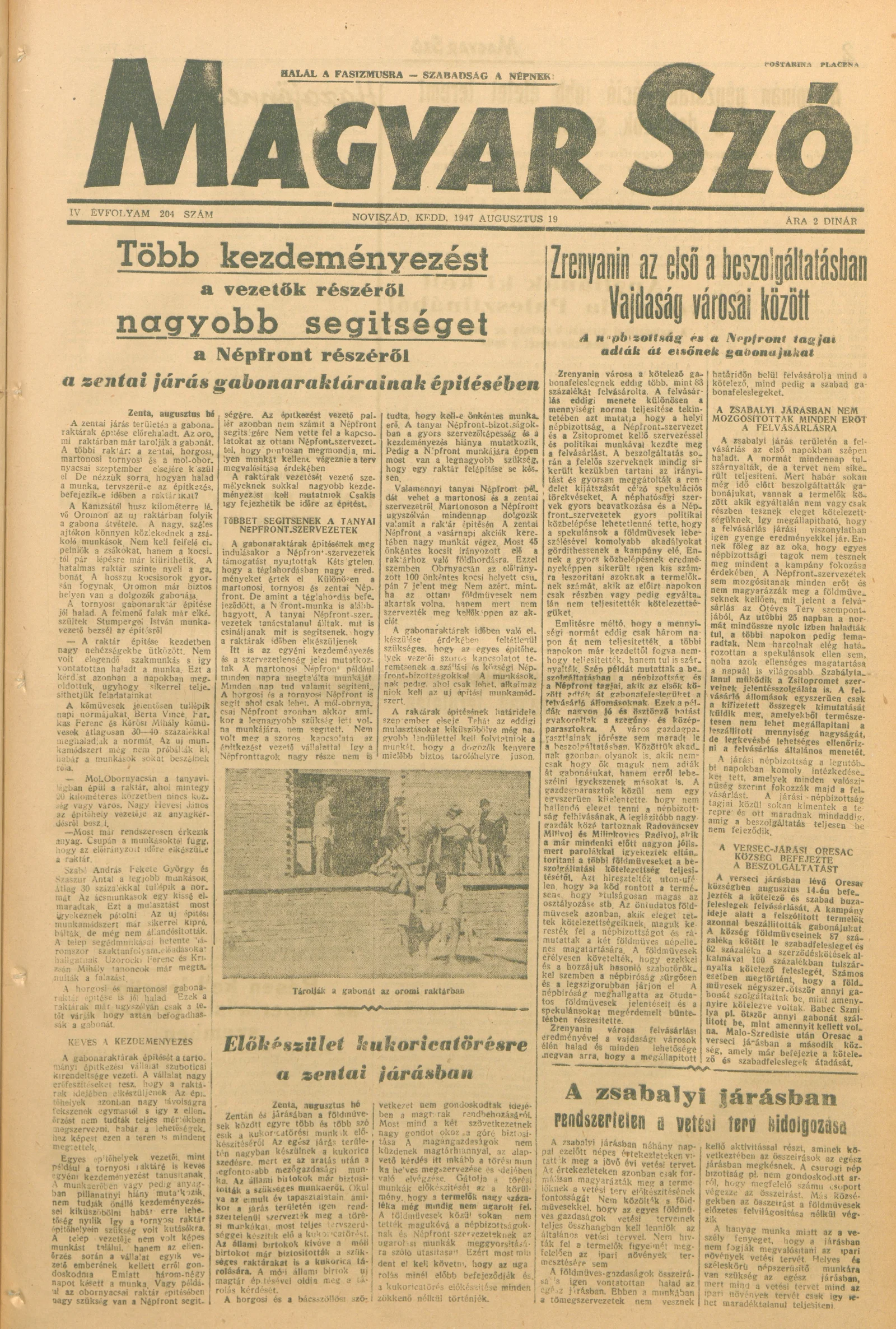 Magyar Szó, 4. évf. 1947. augusztus 19. 204. sz. 1–6. oldal