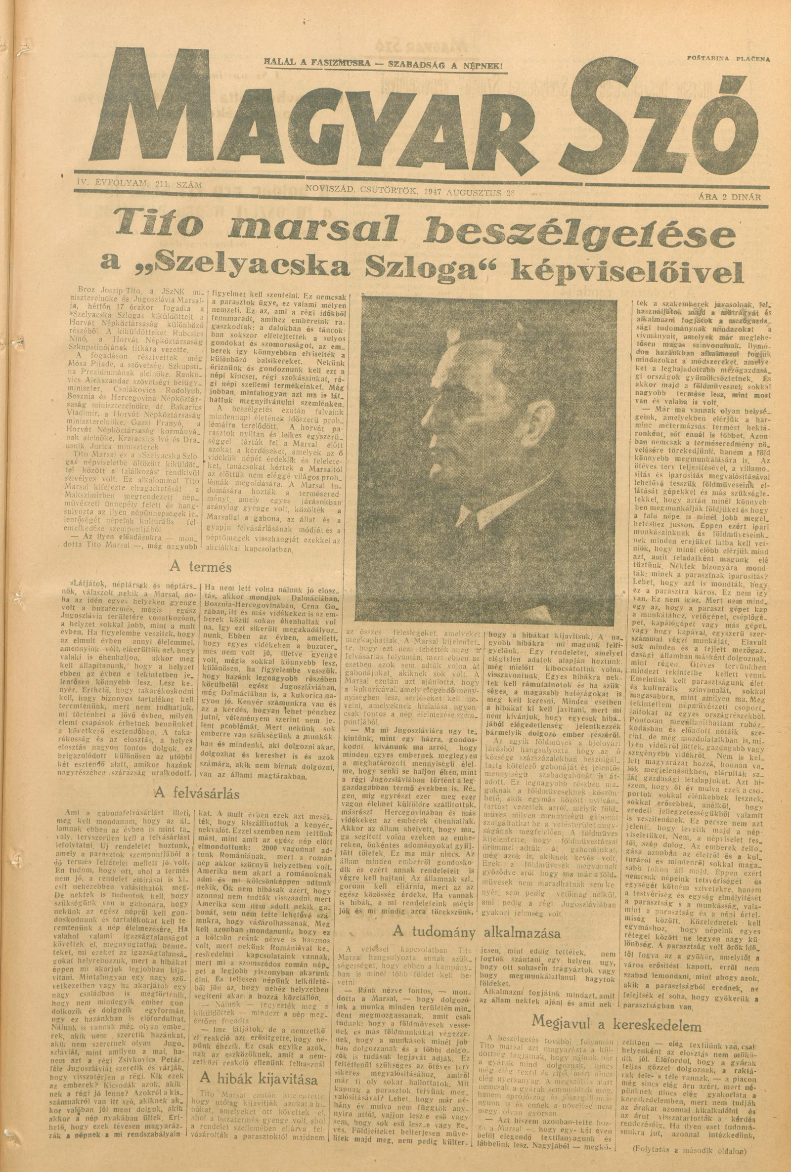 Magyar Szó, 4. évf. 1947. augusztus 28. 211. sz. 1–8. oldal