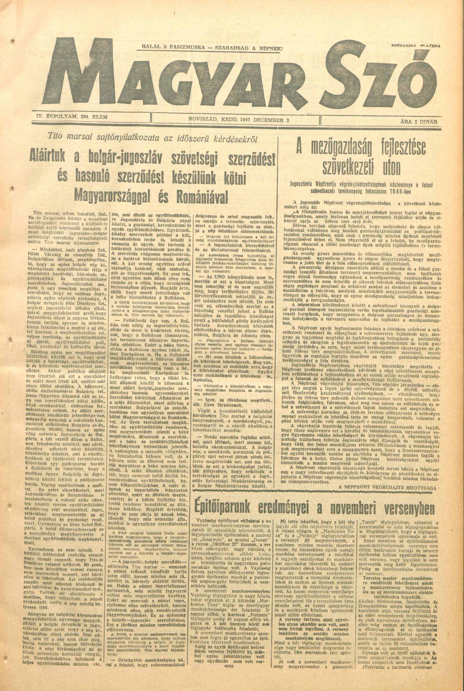 Magyar Szó, 4. évf. 1947. december 2. 294. sz. 1–6. oldal
