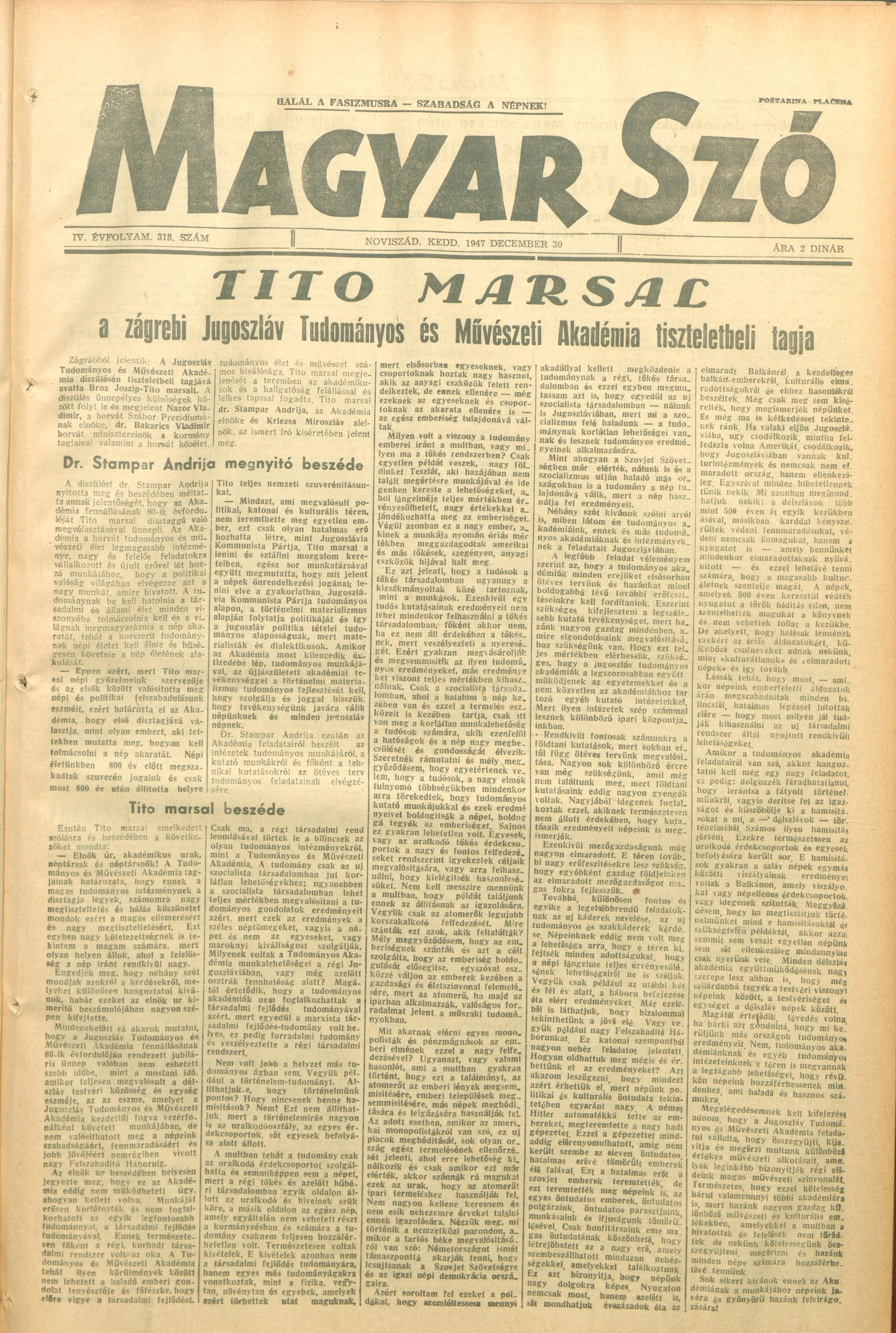 Magyar Szó, 4. évf. 1947. december 30. 318. sz. 1–6. oldal