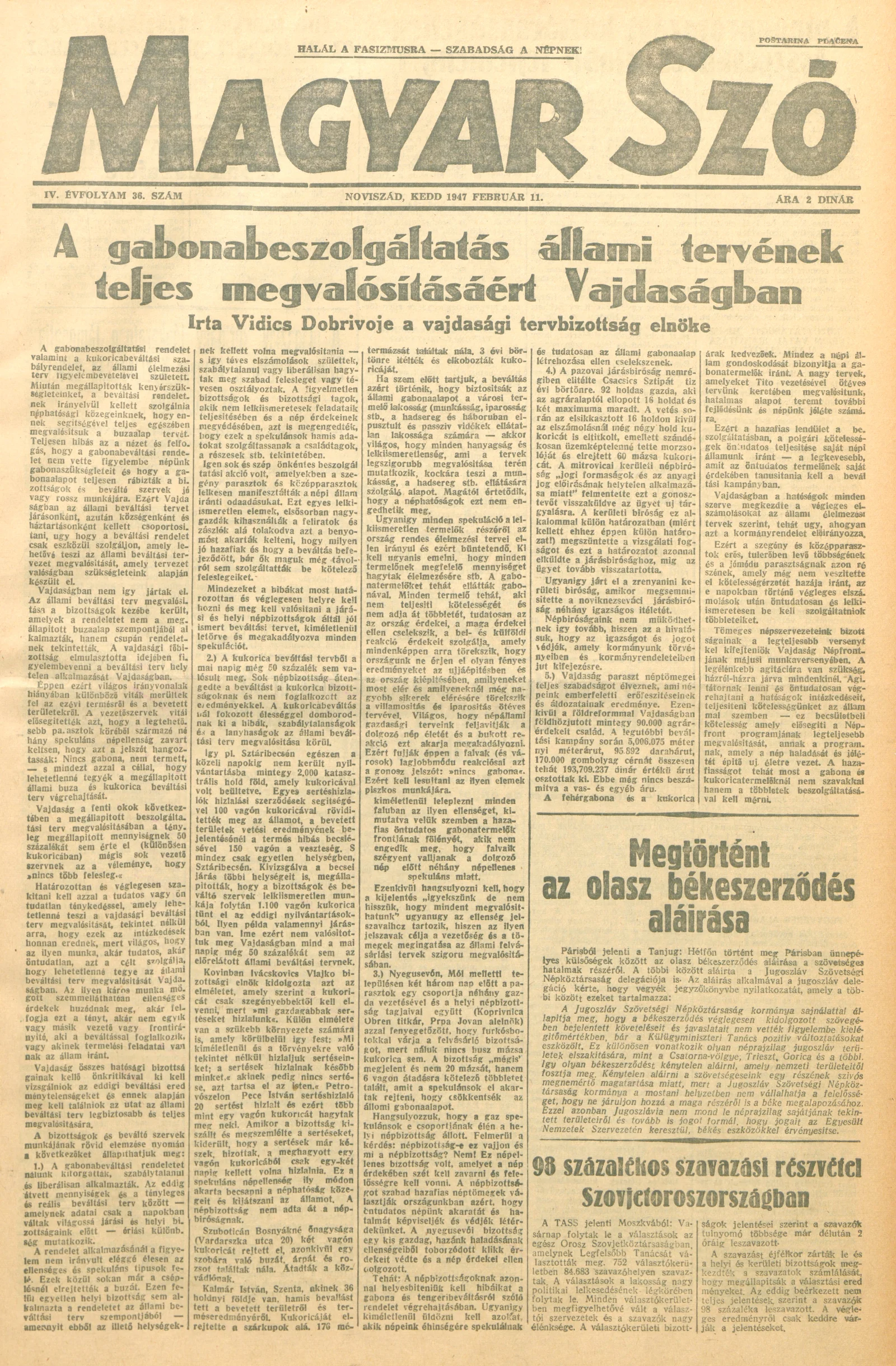 Magyar Szó, 4. évf. 1947. február 11. 36. sz. 1–6. oldal