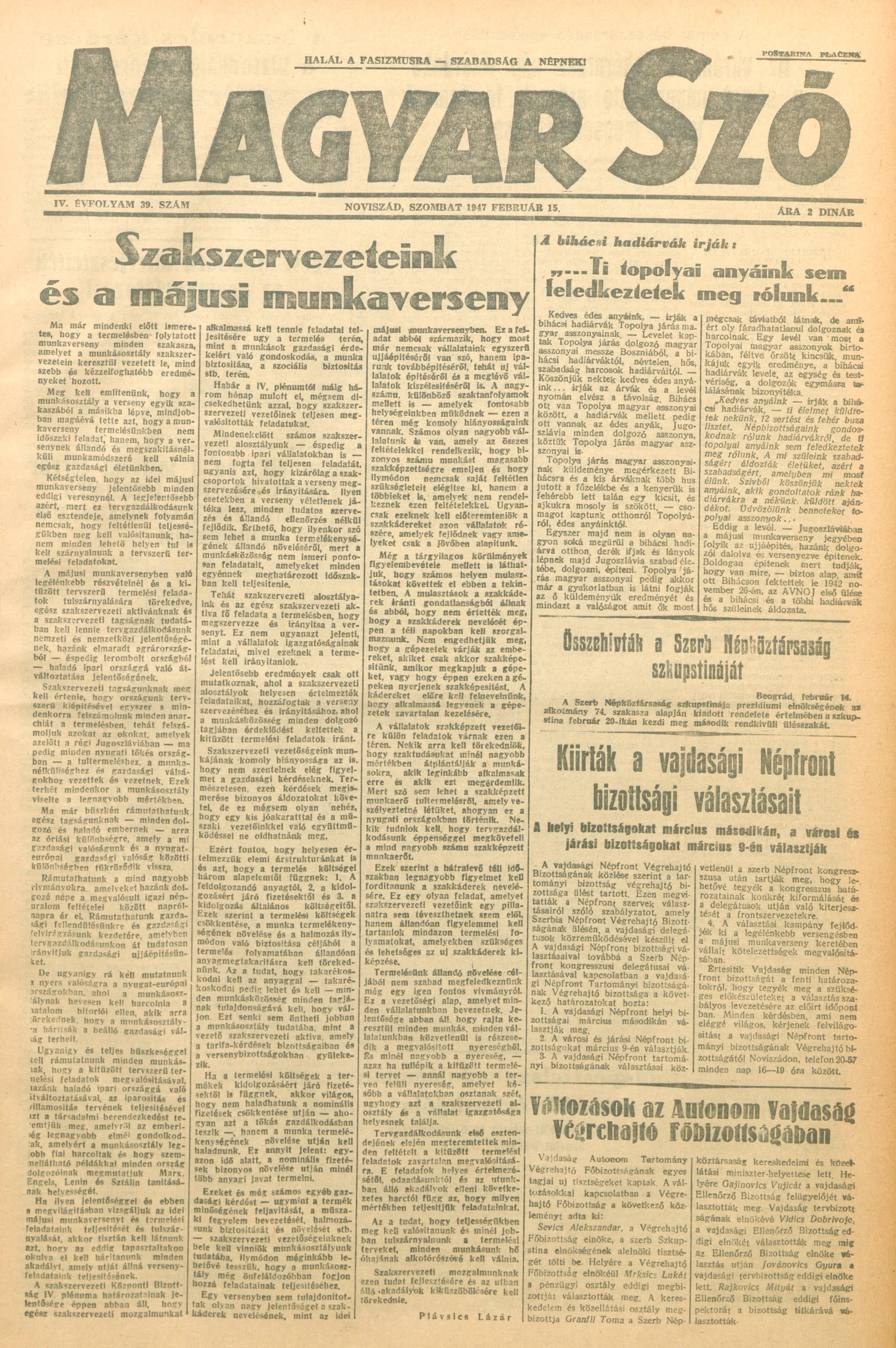Magyar Szó, 4. évf. 1947. február 15. 39. sz. 1–6. oldal