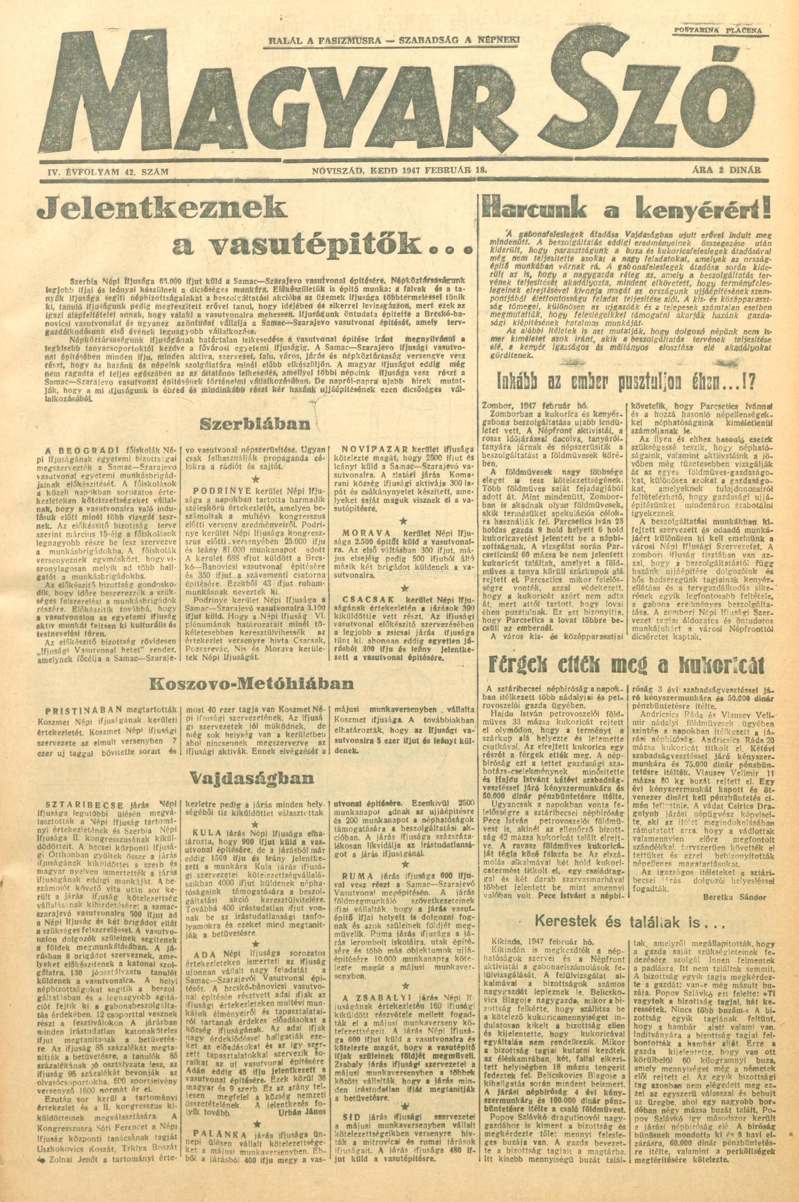Magyar Szó, 4. évf. 1947. február 18. 42. sz. 1–6. oldal