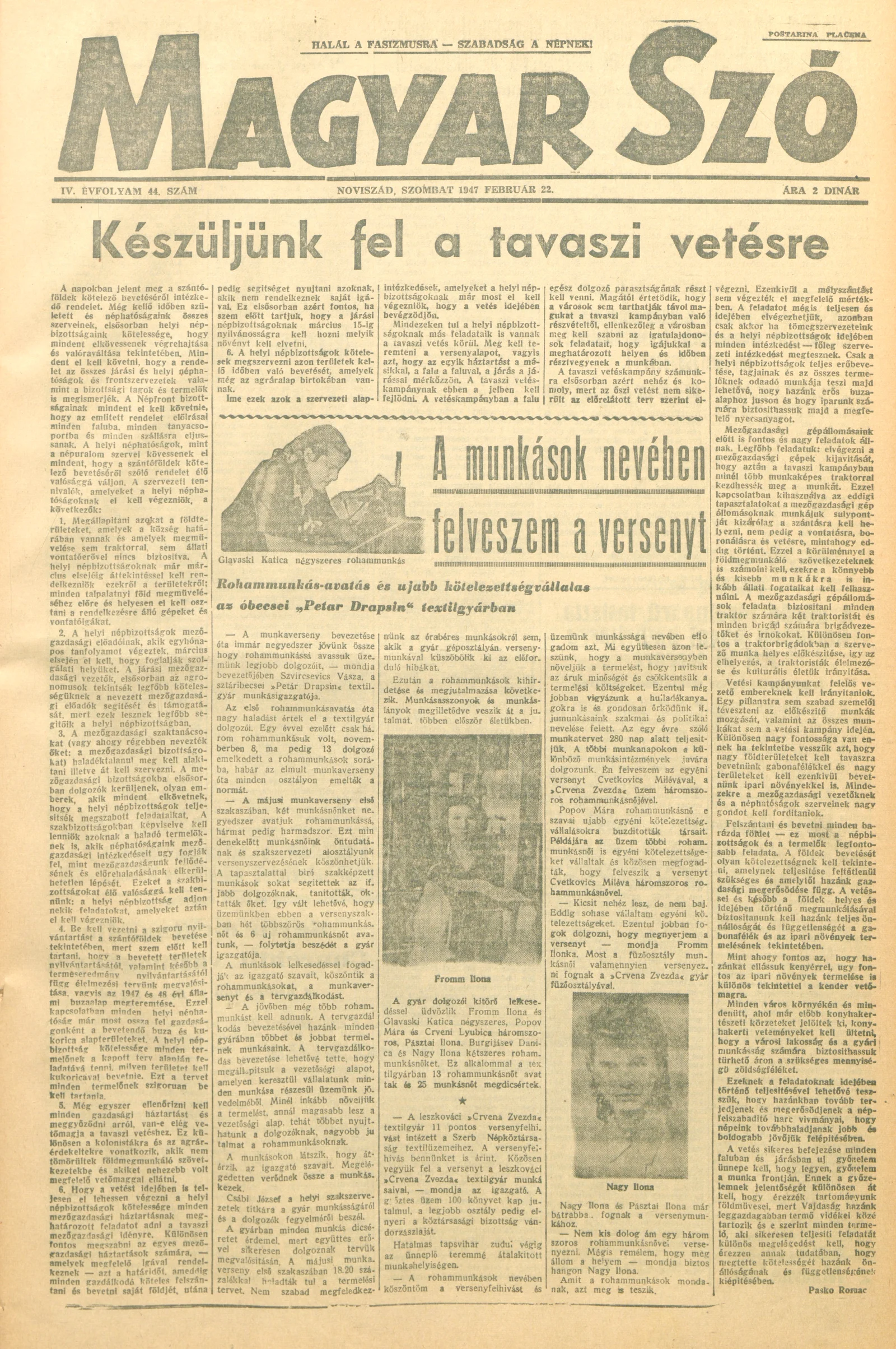 Magyar Szó, 4. évf. 1947. február 22. 44. sz. 1–6. oldal