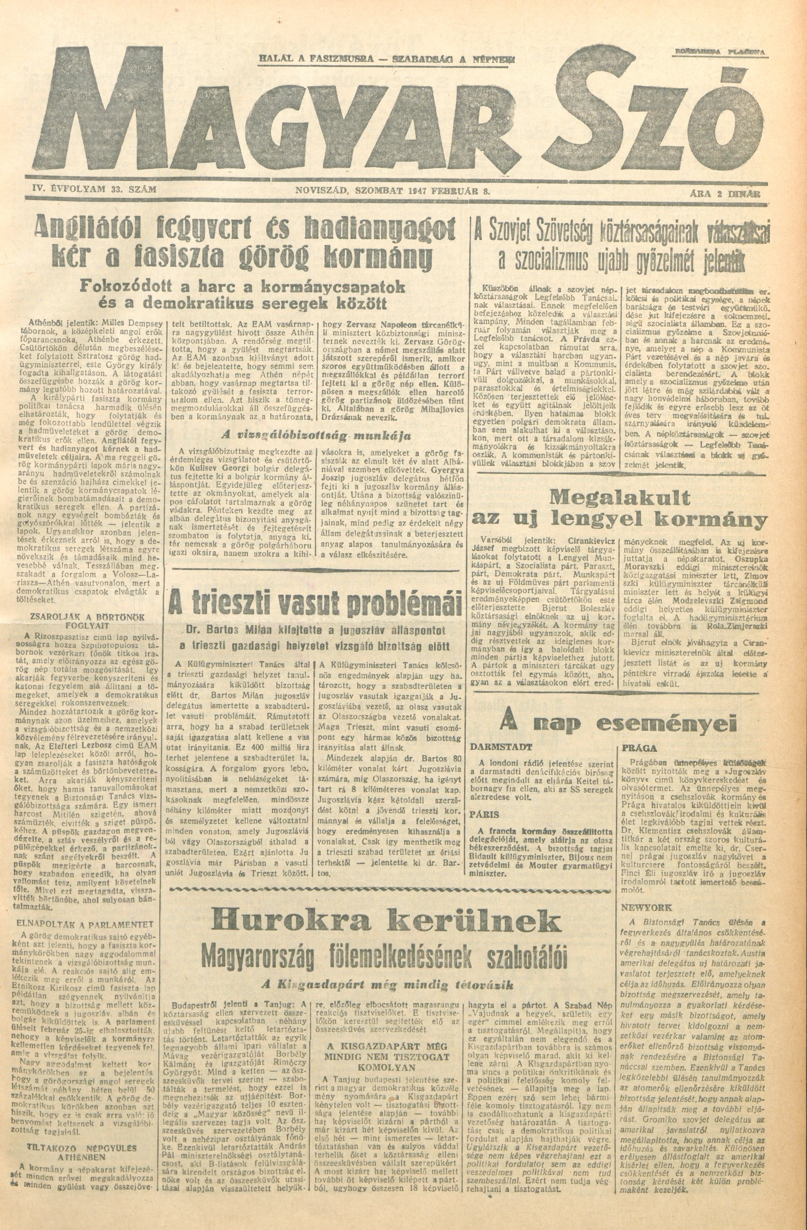 Magyar Szó, 4. évf. 1947. február 8. 33. sz. 1–4. oldal