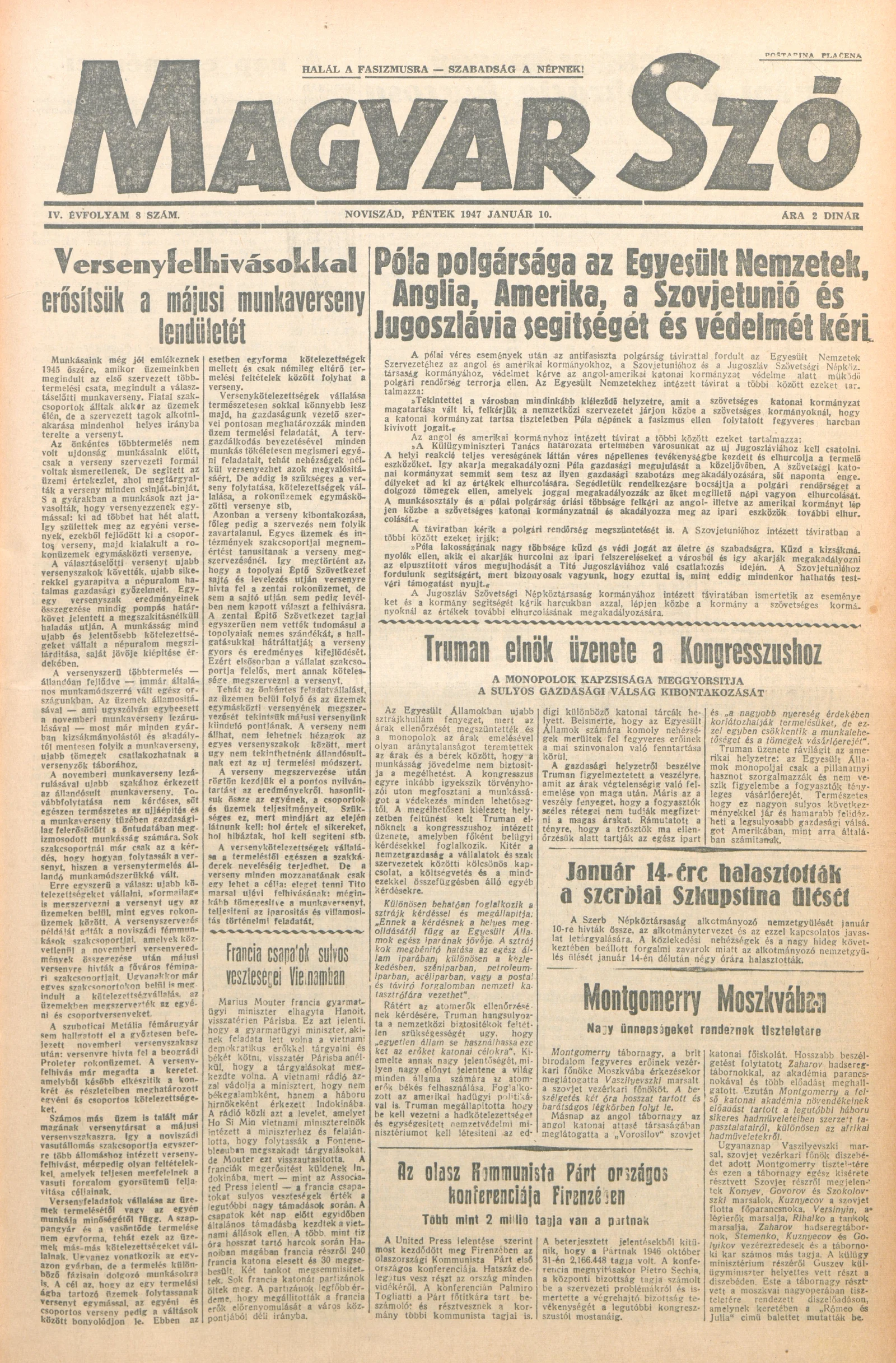 Magyar Szó, 4. évf. 1947. január 10. 8. sz. 1–6. oldal