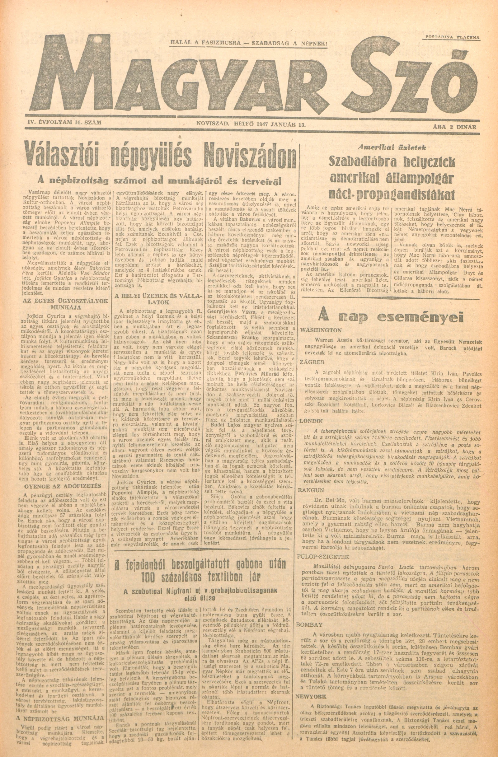 Magyar Szó, 4. évf. 1947. január 13. 11. sz. 1–4. oldal