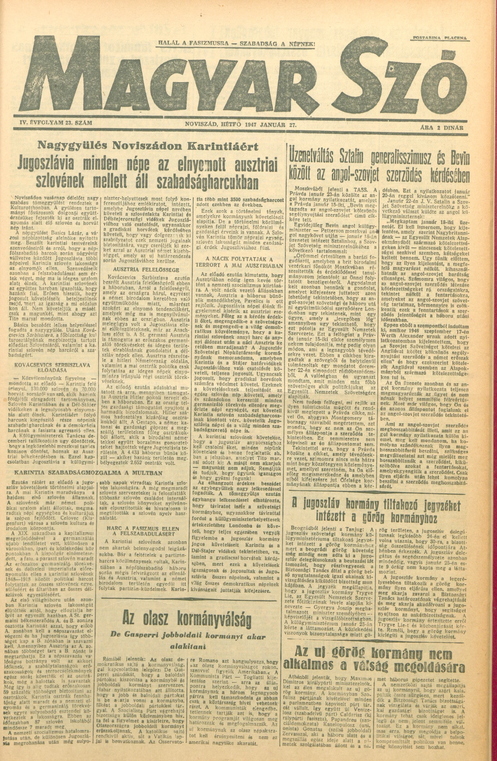 Magyar Szó, 4. évf. 1947. január 27. 23. sz. 1–4. oldal