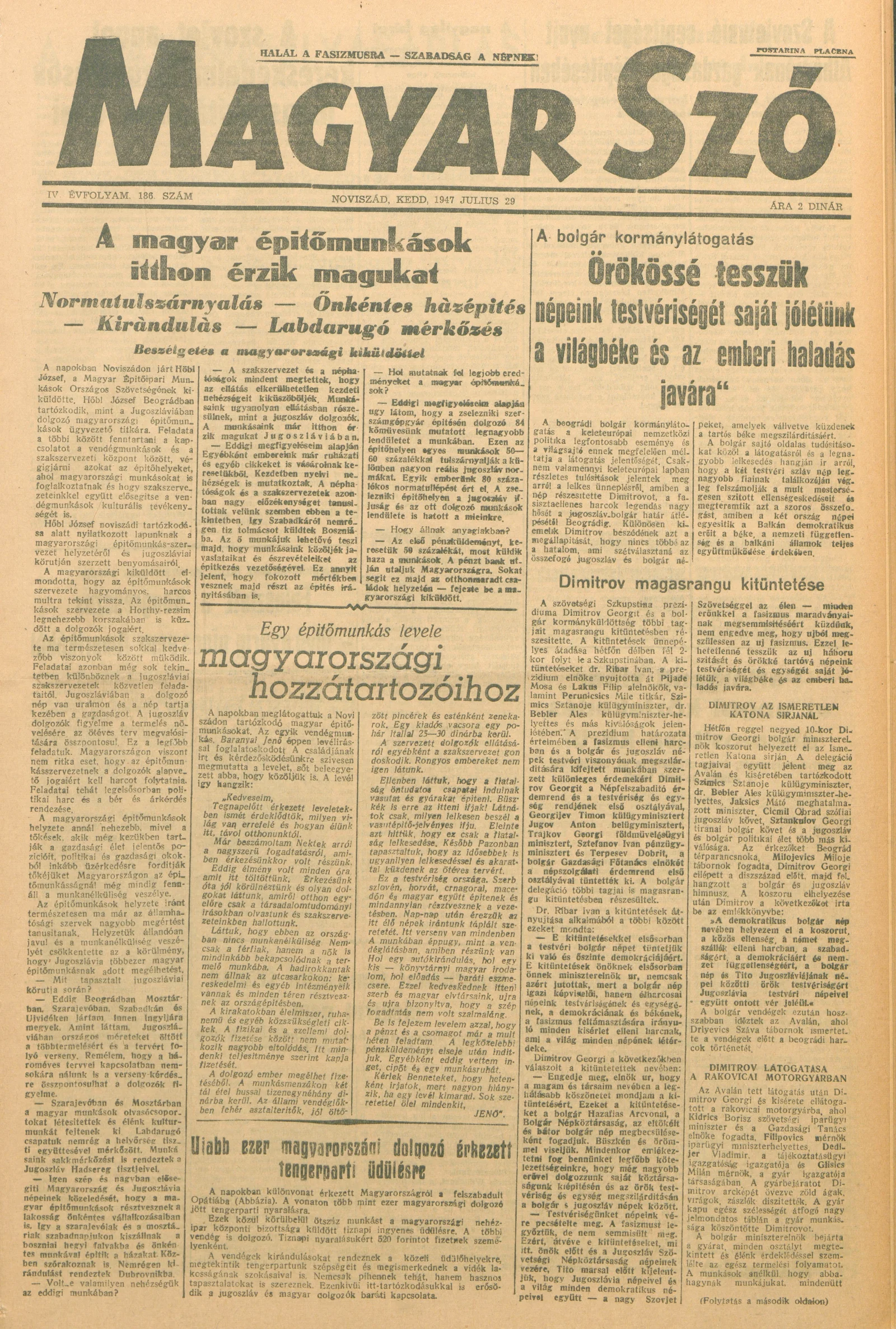 Magyar Szó, 4. évf. 1947. július 29. 186. sz. 1–6. oldal