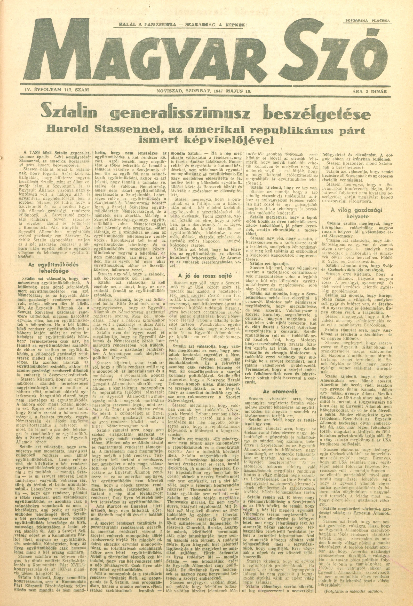 Magyar Szó, 4. évf. 1947. május 10. 117. sz. 1–4. oldal