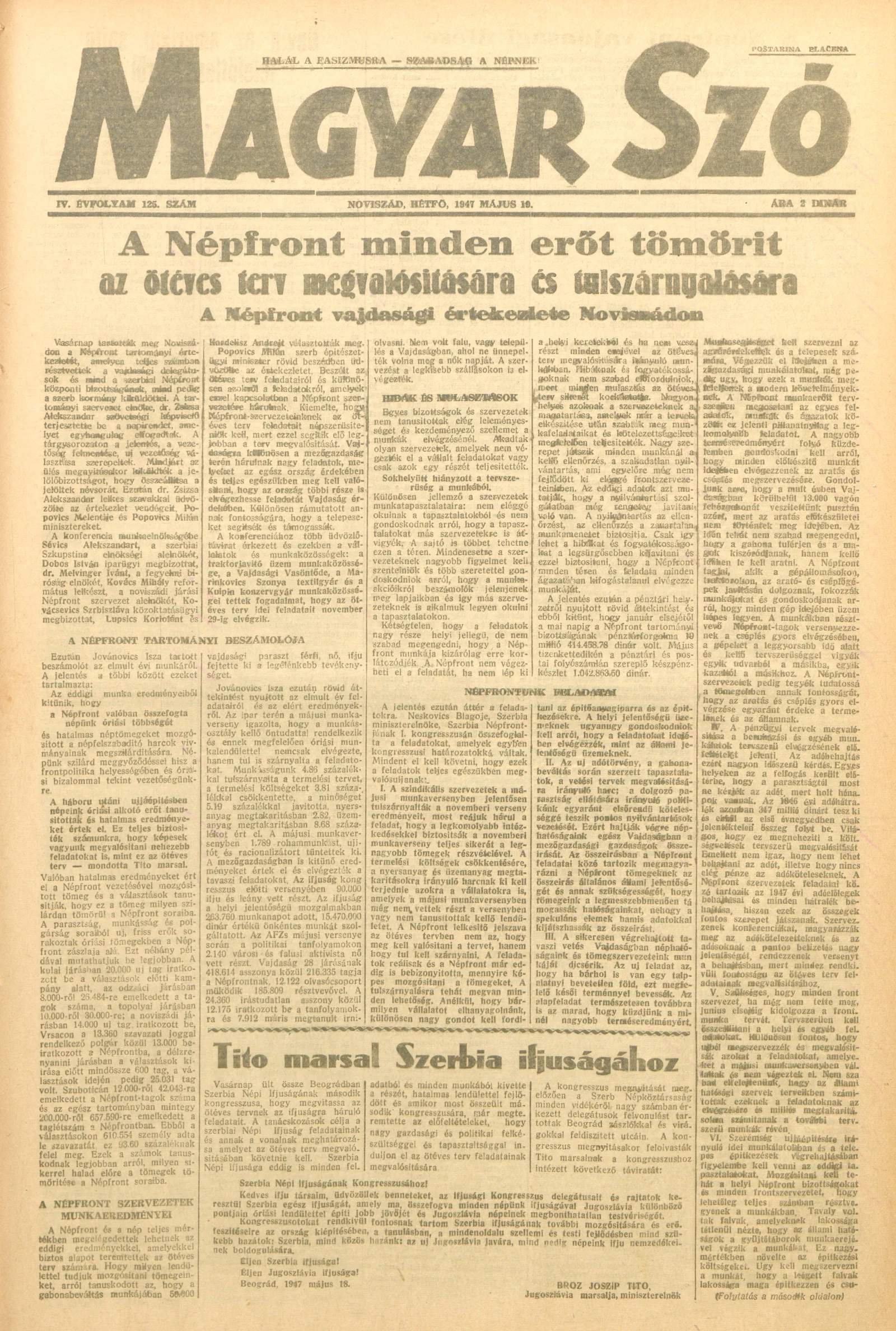 Magyar Szó, 4. évf. 1947. május 19. 125. sz.