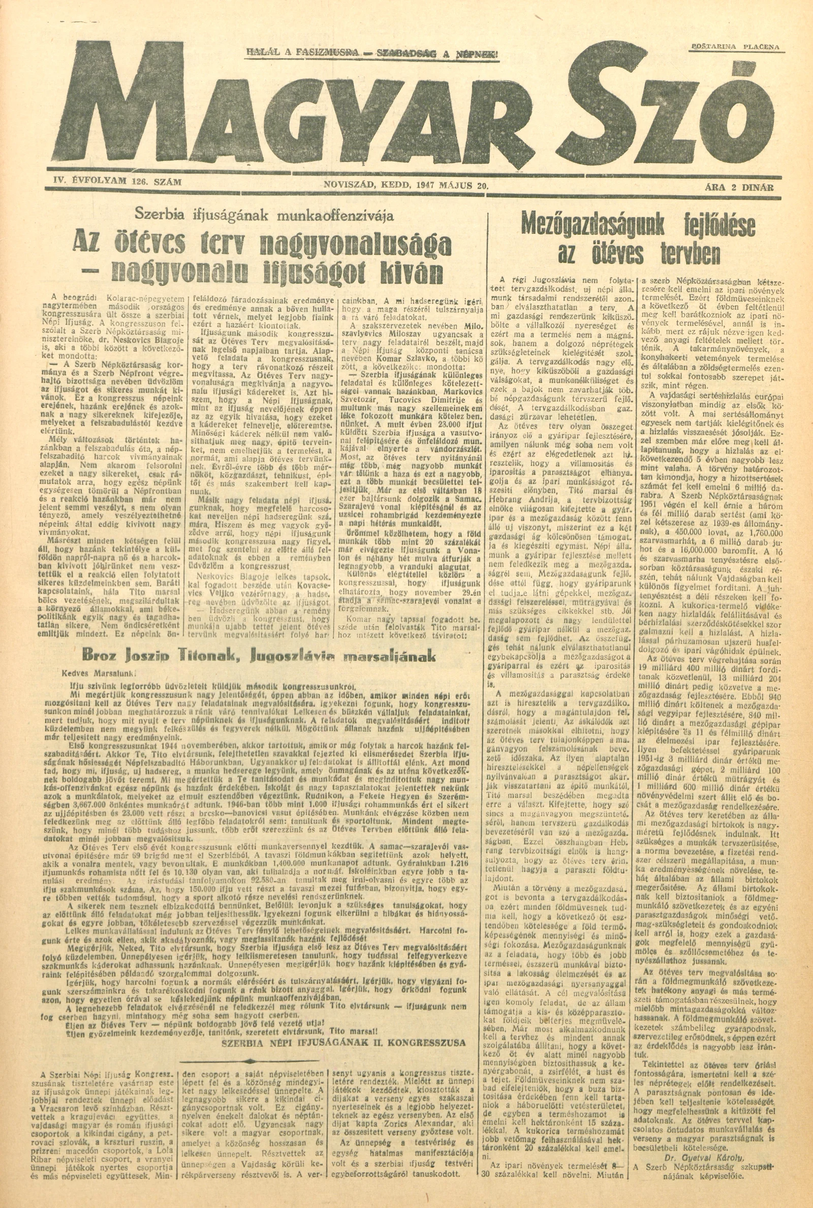 Magyar Szó, 4. évf. 1947. május 20. 126. sz. 1–4. oldal