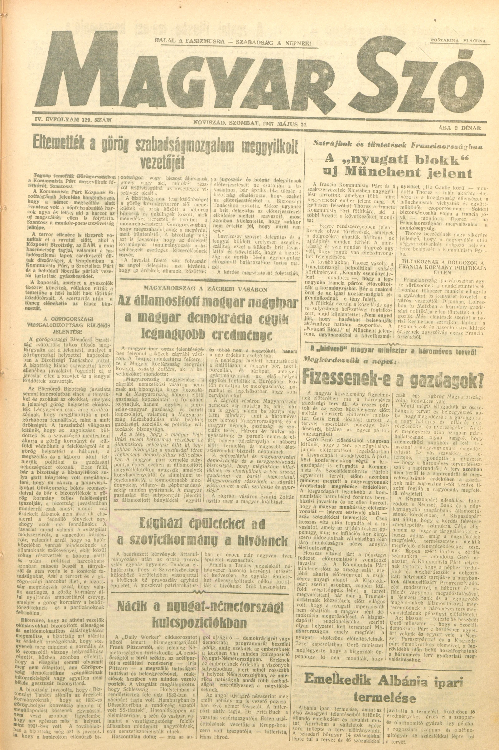 Magyar Szó, 4. évf. 1947. május 24. 129. sz. 1–6. oldal