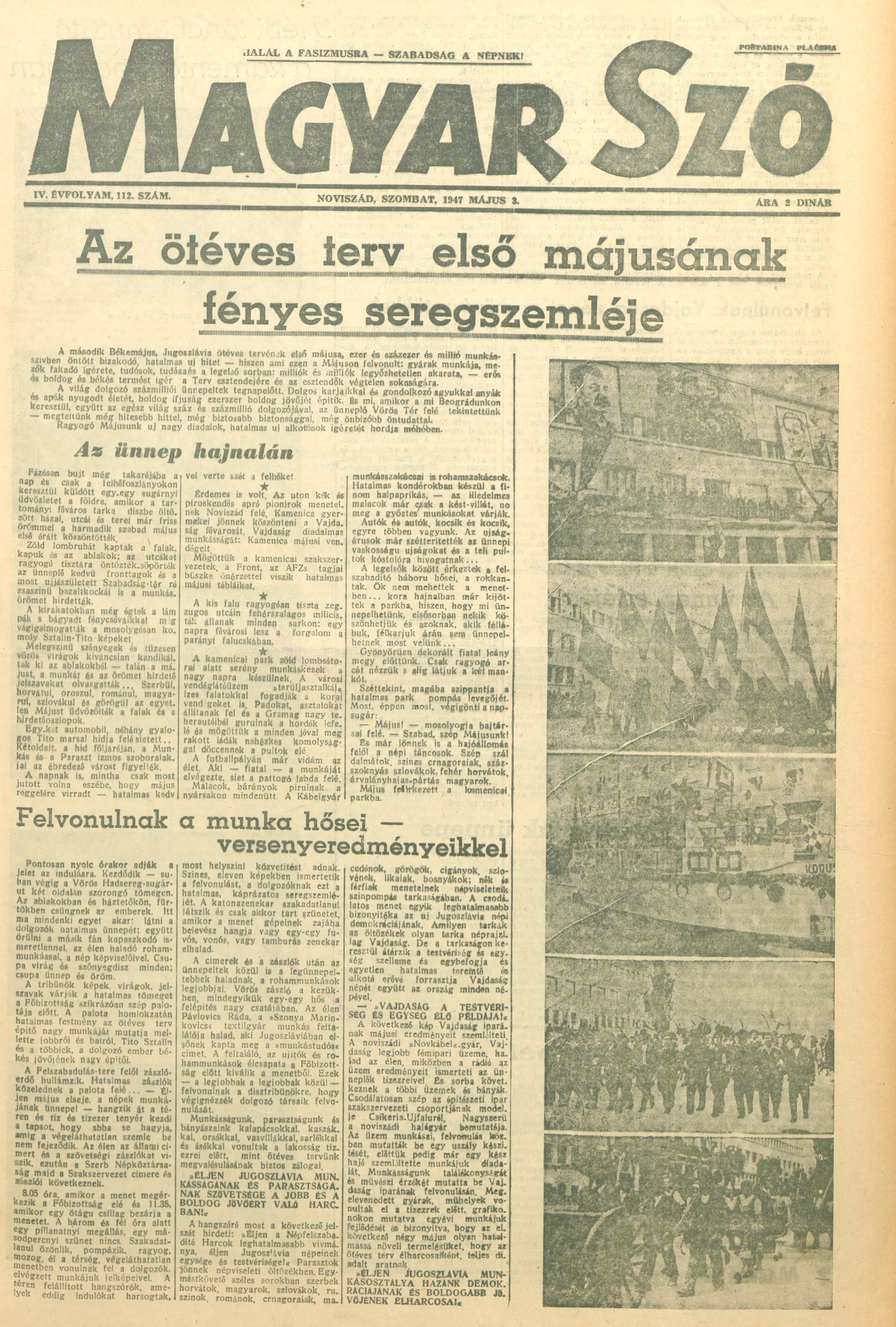 Magyar Szó, 4. évf. 1947. május 3. 112. sz. 1–6. oldal