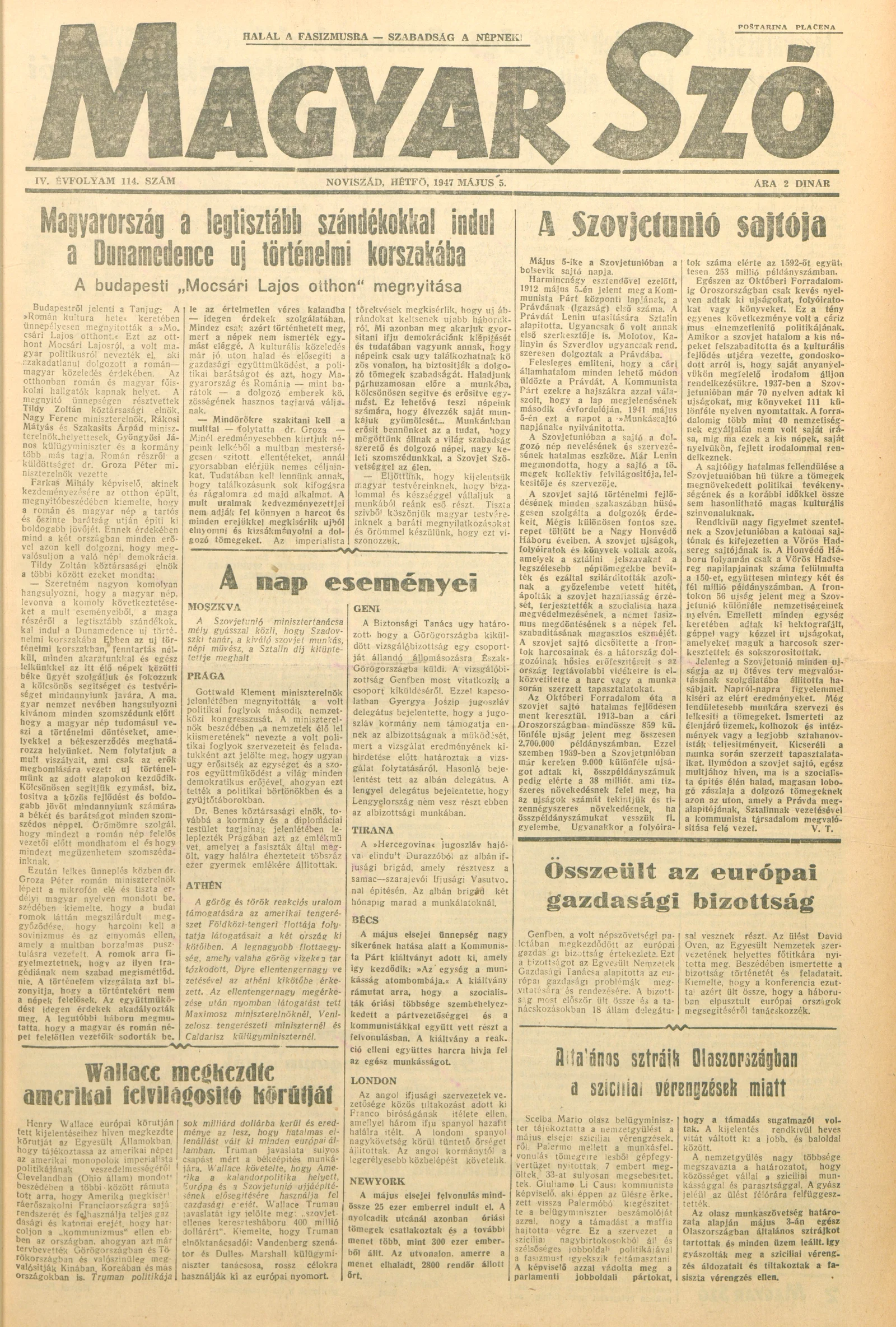 Magyar Szó, 4. évf. 1947. május 5. 114. sz. 1–4. oldal