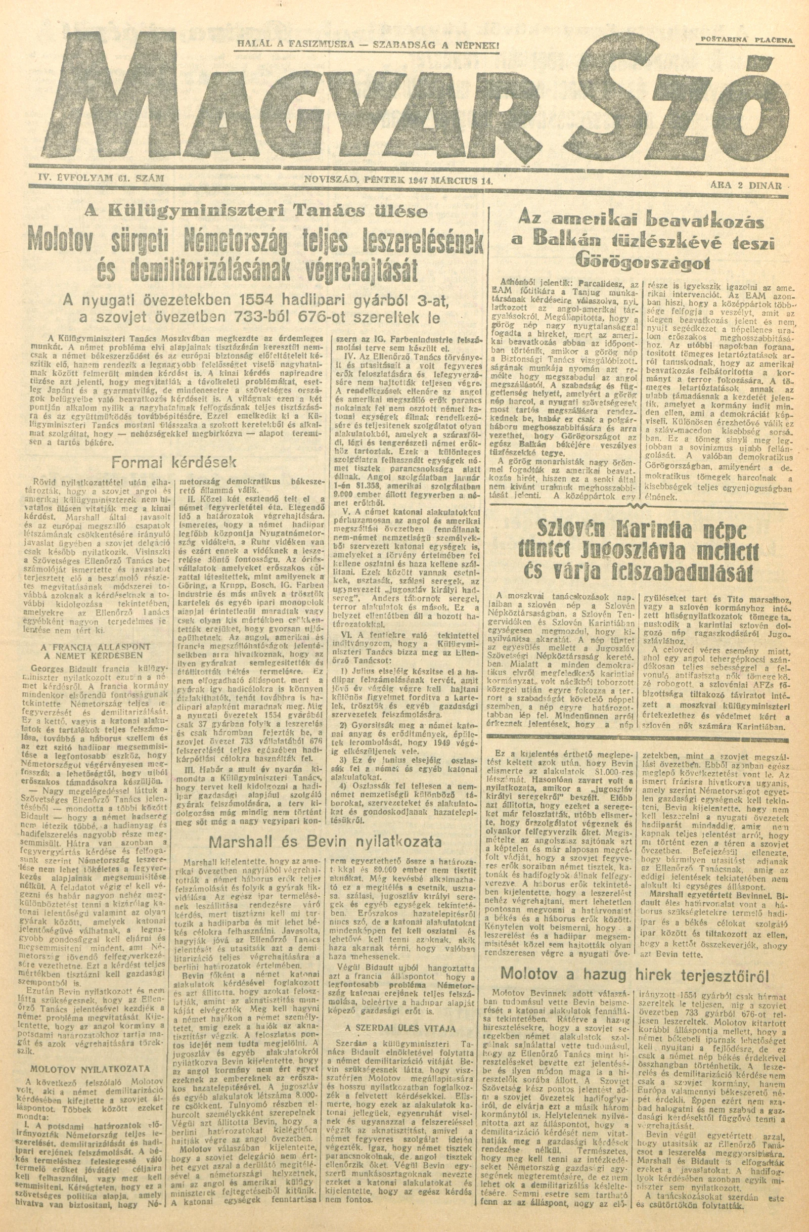 Magyar Szó, 4. évf. 1947. március 14. 61. sz. 1–6. oldal
