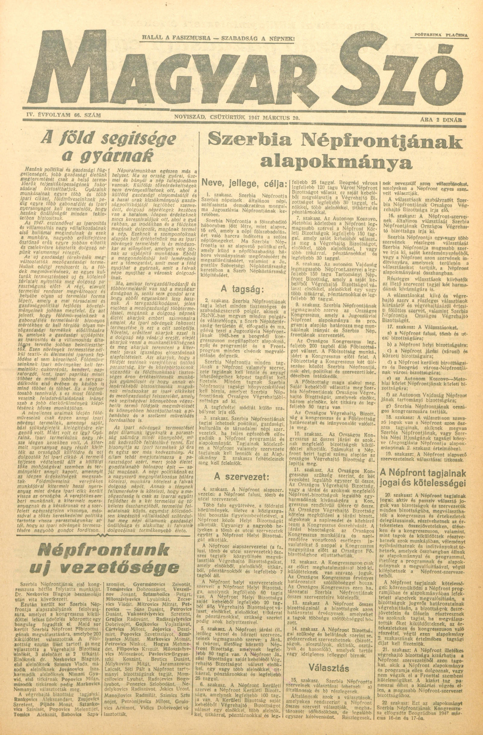 Magyar Szó, 4. évf. 1947. március 20. 66. sz. 1–6. oldal