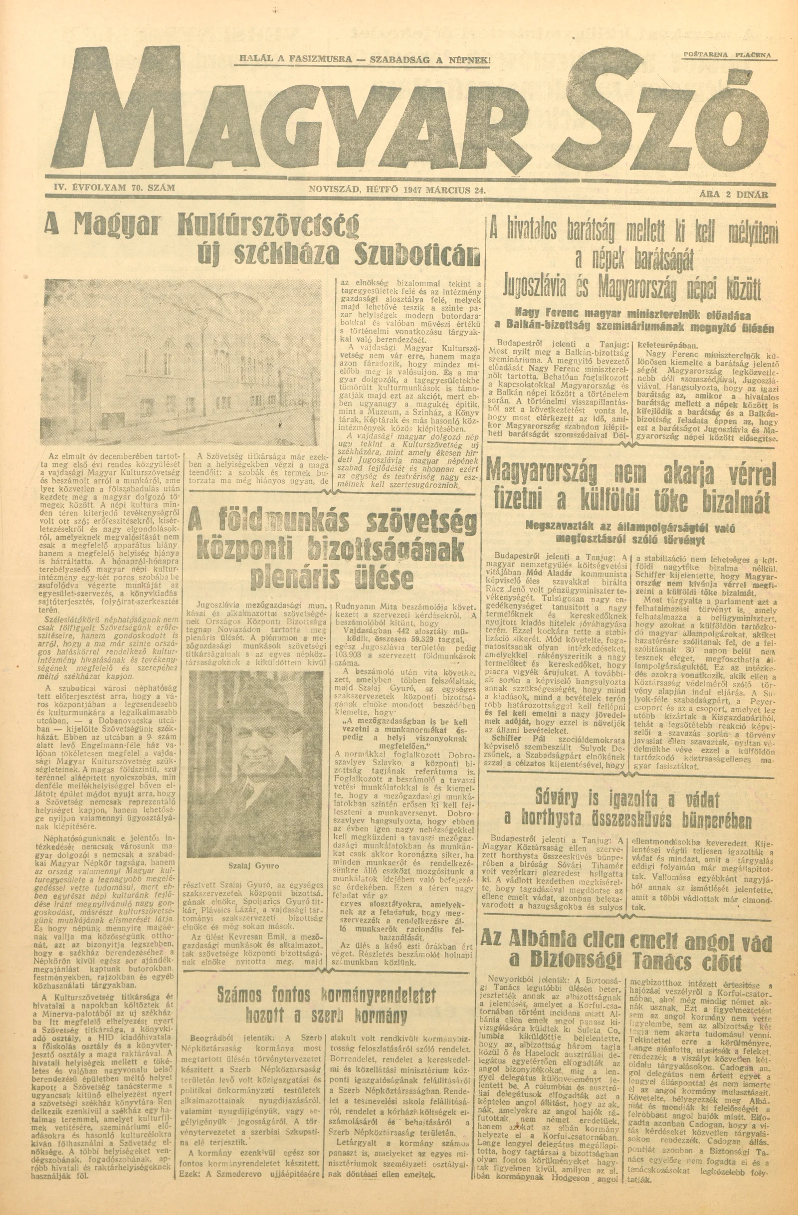 Magyar Szó, 4. évf. 1947. március 24. 70. sz. 1–4. oldal