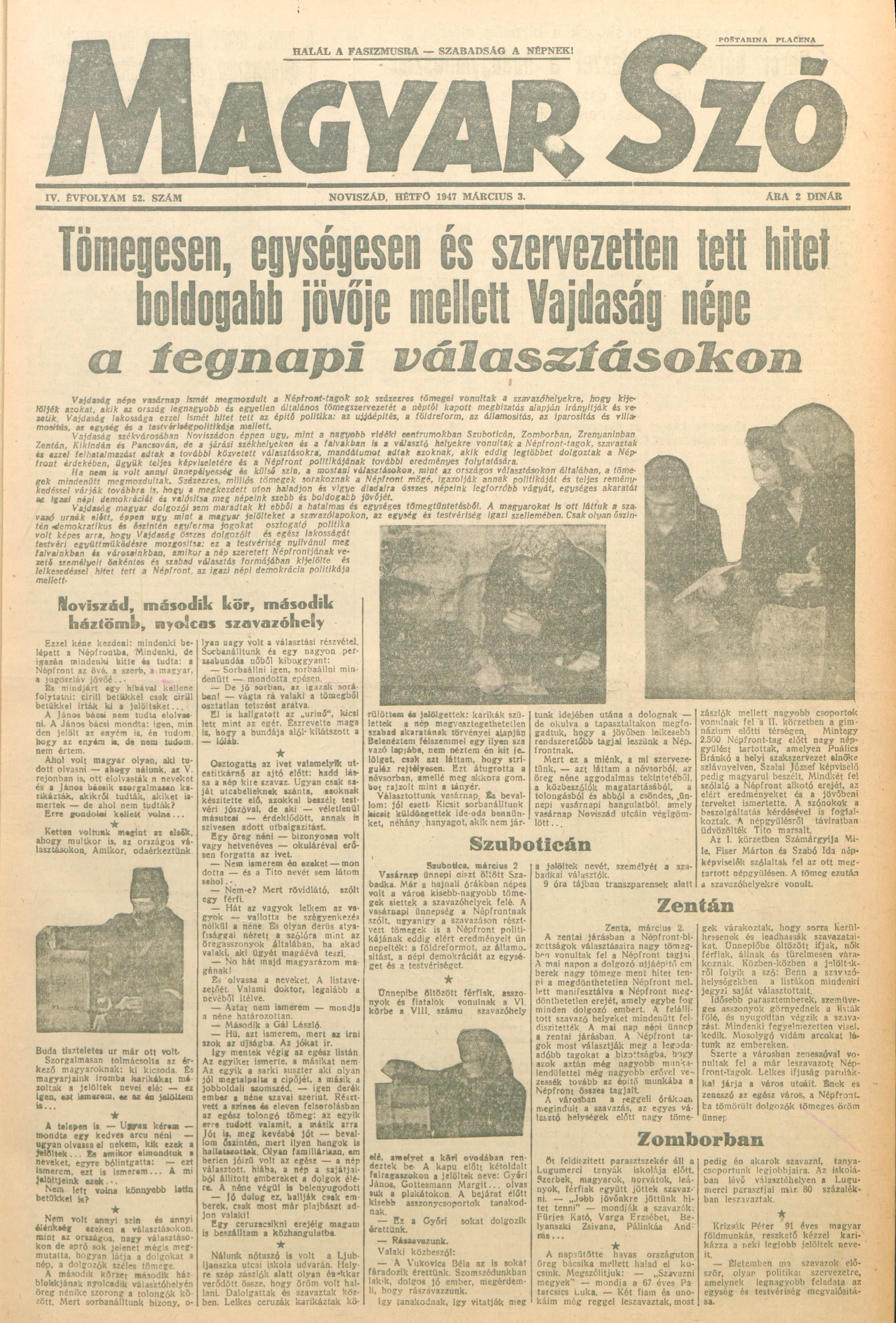 Magyar Szó, 4. évf. 1947. március 3. 52. sz. 1–4. oldal