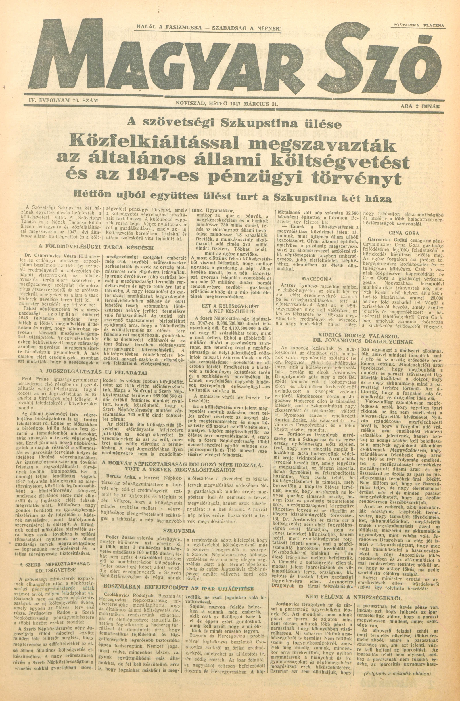 Magyar Szó, 4. évf. 1947. március 31. 76. sz. 1–4. oldal