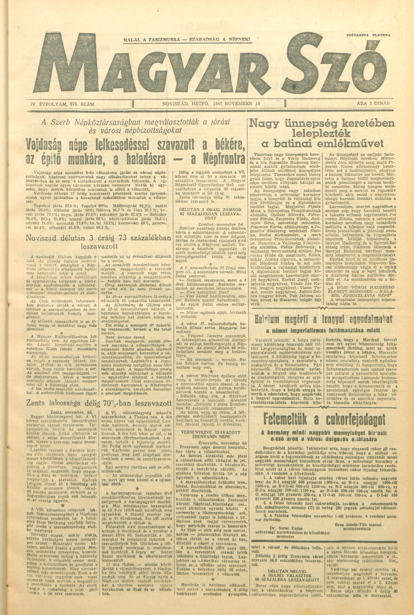 Magyar Szó, 4. évf. 1947. november 10. 275. sz. 1–4. oldal