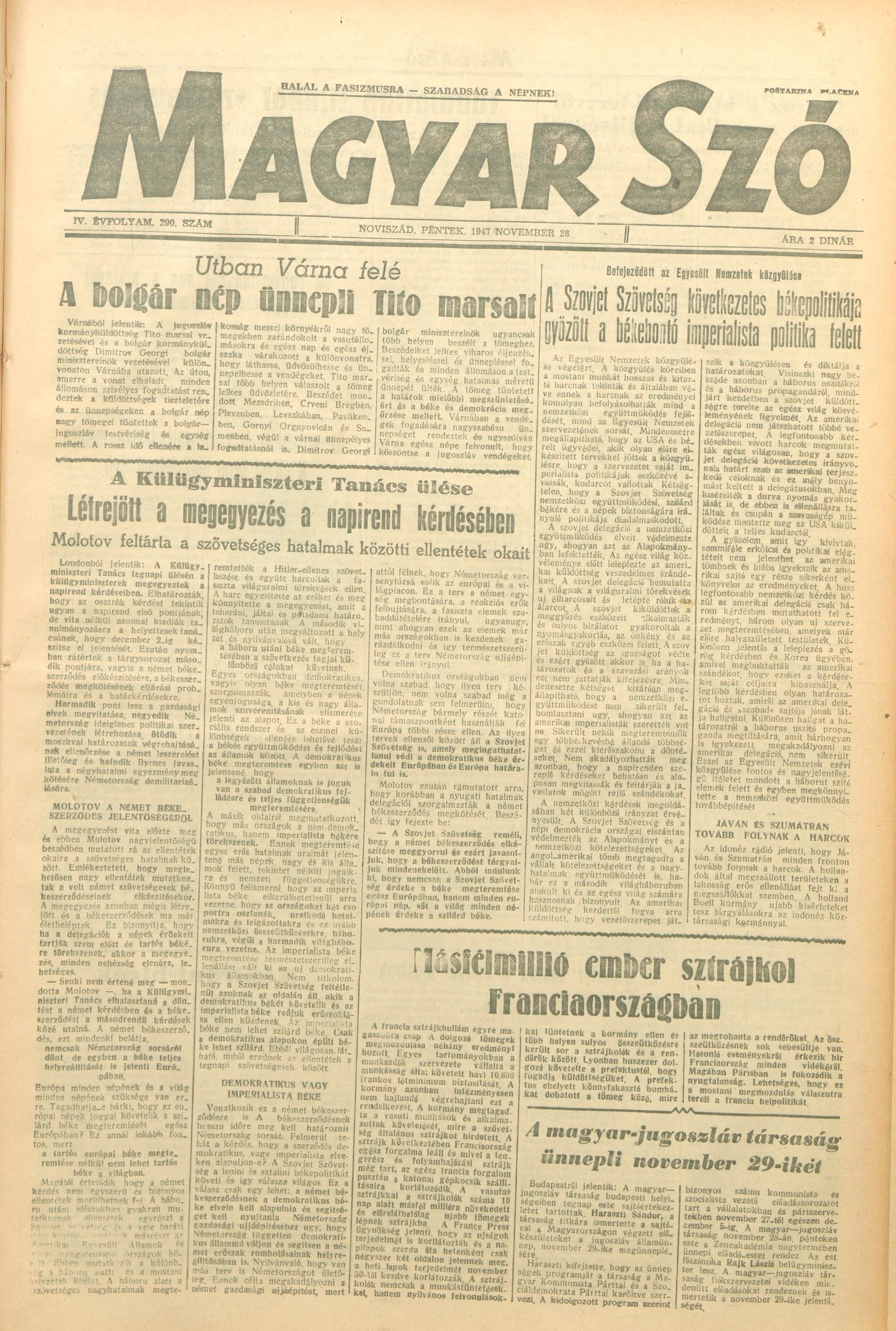 Magyar Szó, 4. évf. 1947. november 28. 290. sz. 1–6. oldal