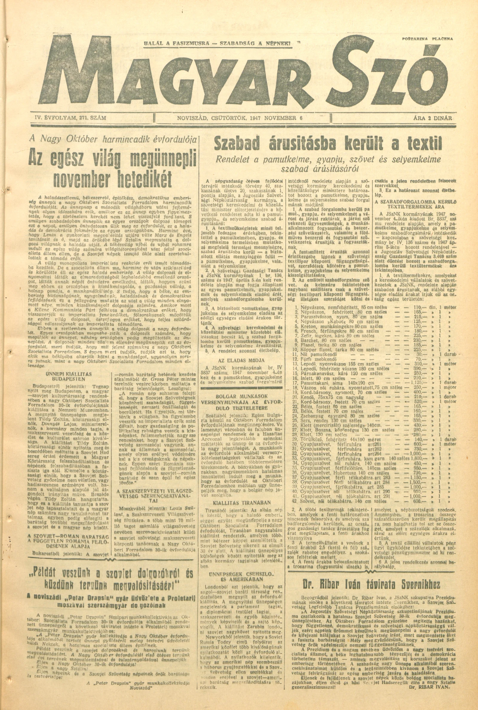 Magyar Szó, 4. évf. 1947. november 6. 271. sz. 1–6. oldal
