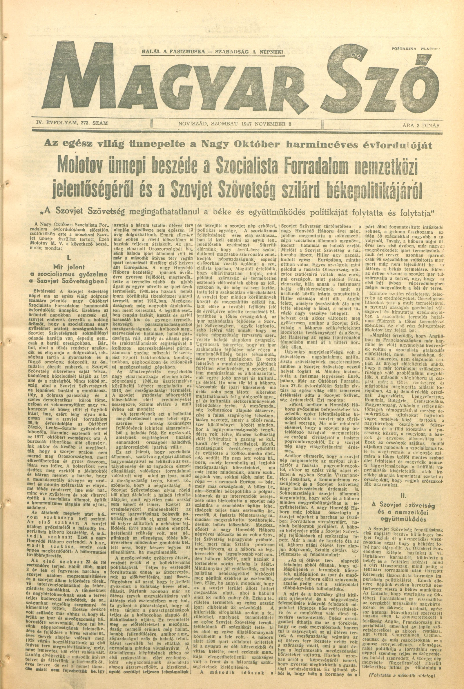 Magyar Szó, 4. évf. 1947. november 8. 273. sz. 1–6. oldal