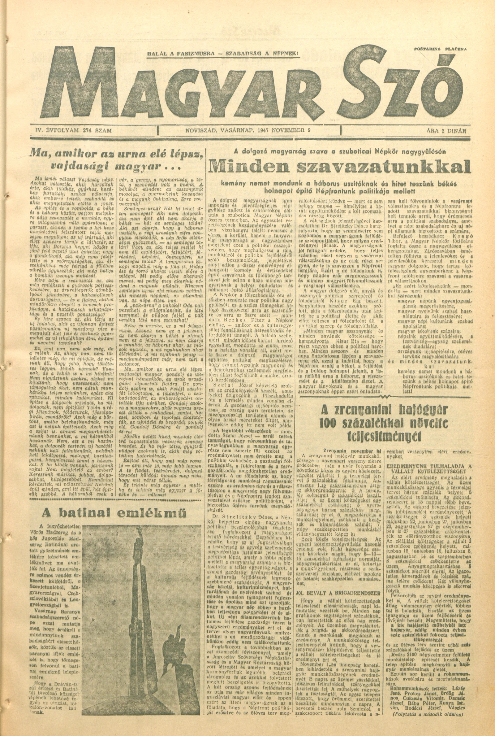Magyar Szó, 4. évf. 1947. november 9. 274. sz. 1–8. oldal