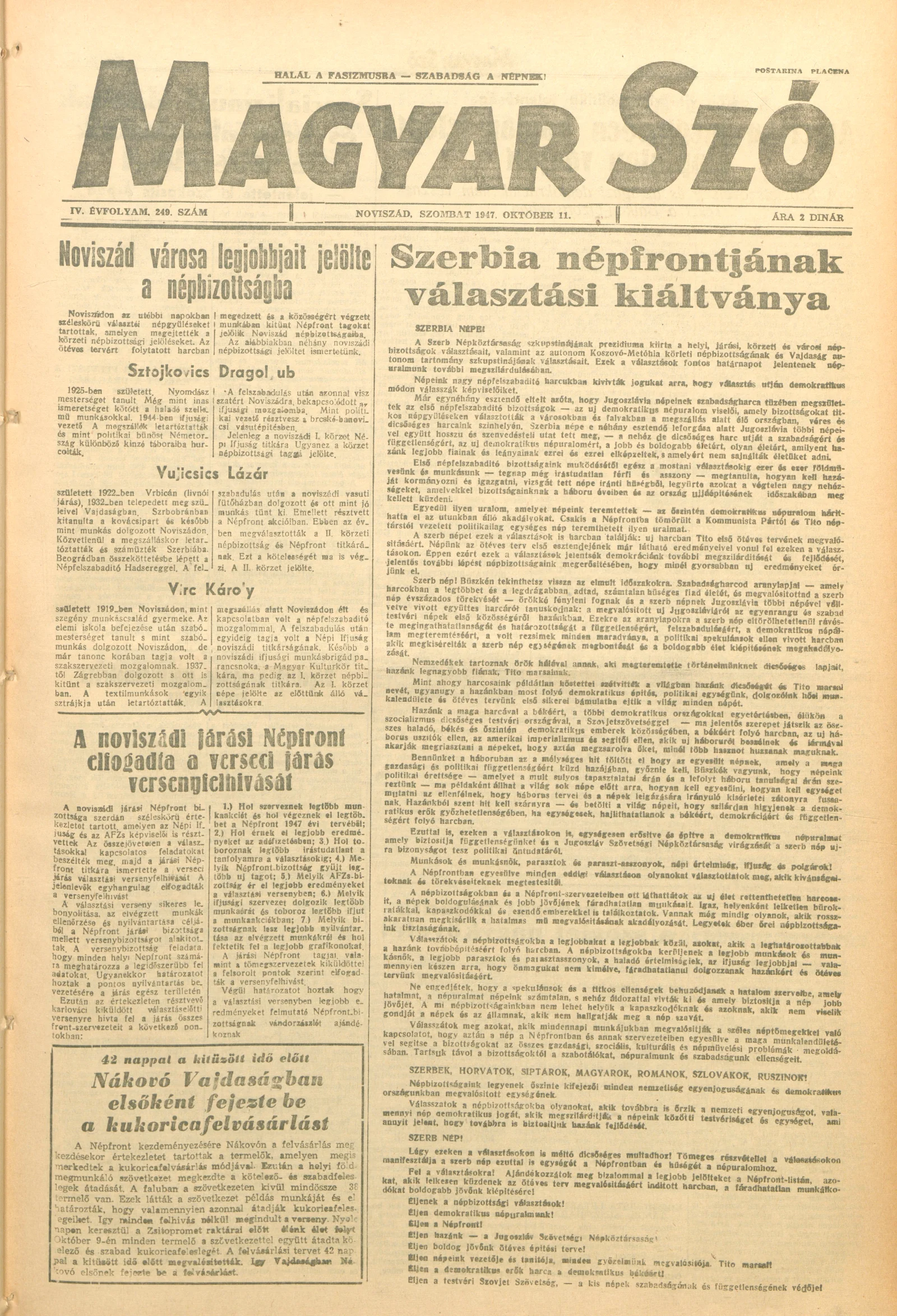 Magyar Szó, 4. évf. 1947. október 11. 249. sz. 1–4. oldal