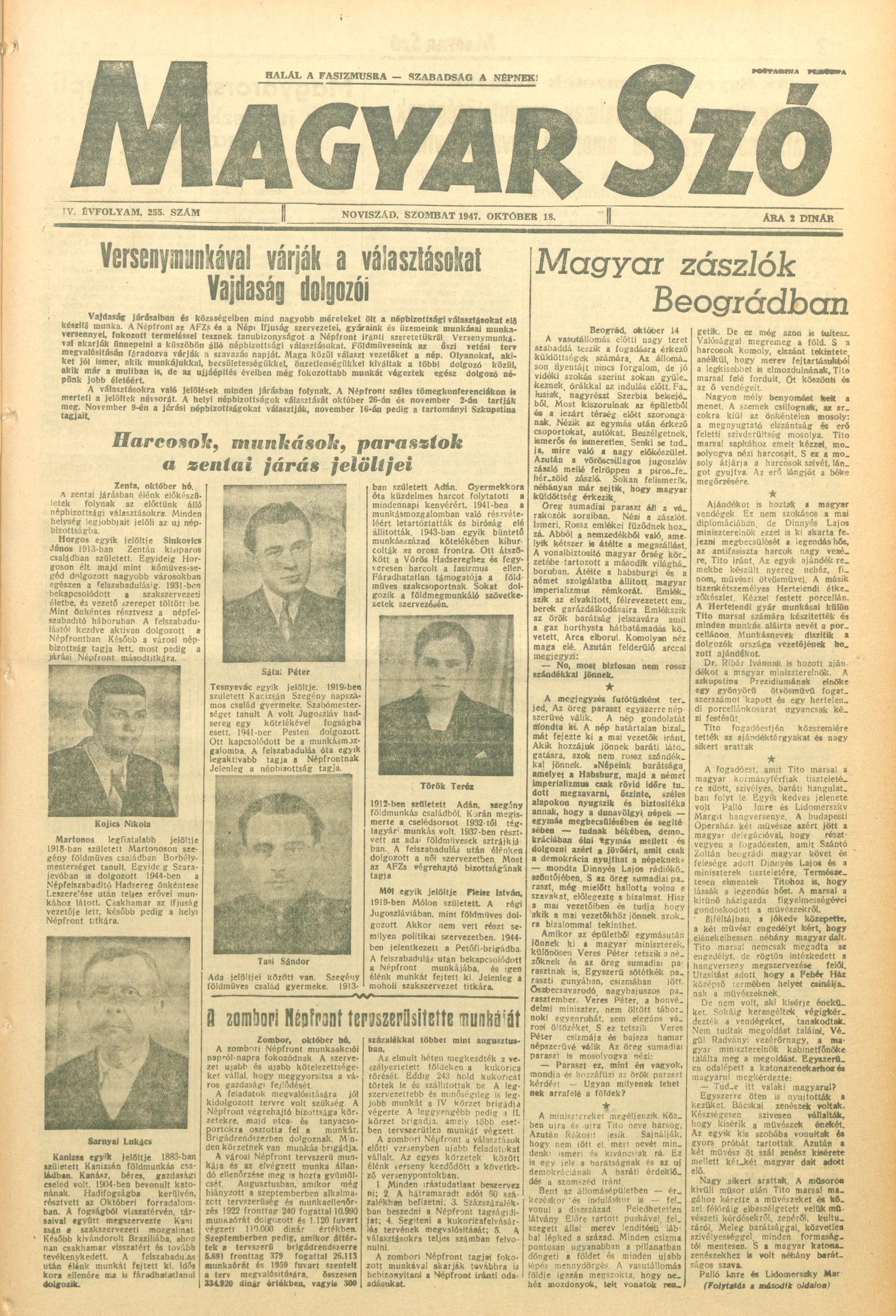 Magyar Szó, 4. évf. 1947. október 18. 255. sz.