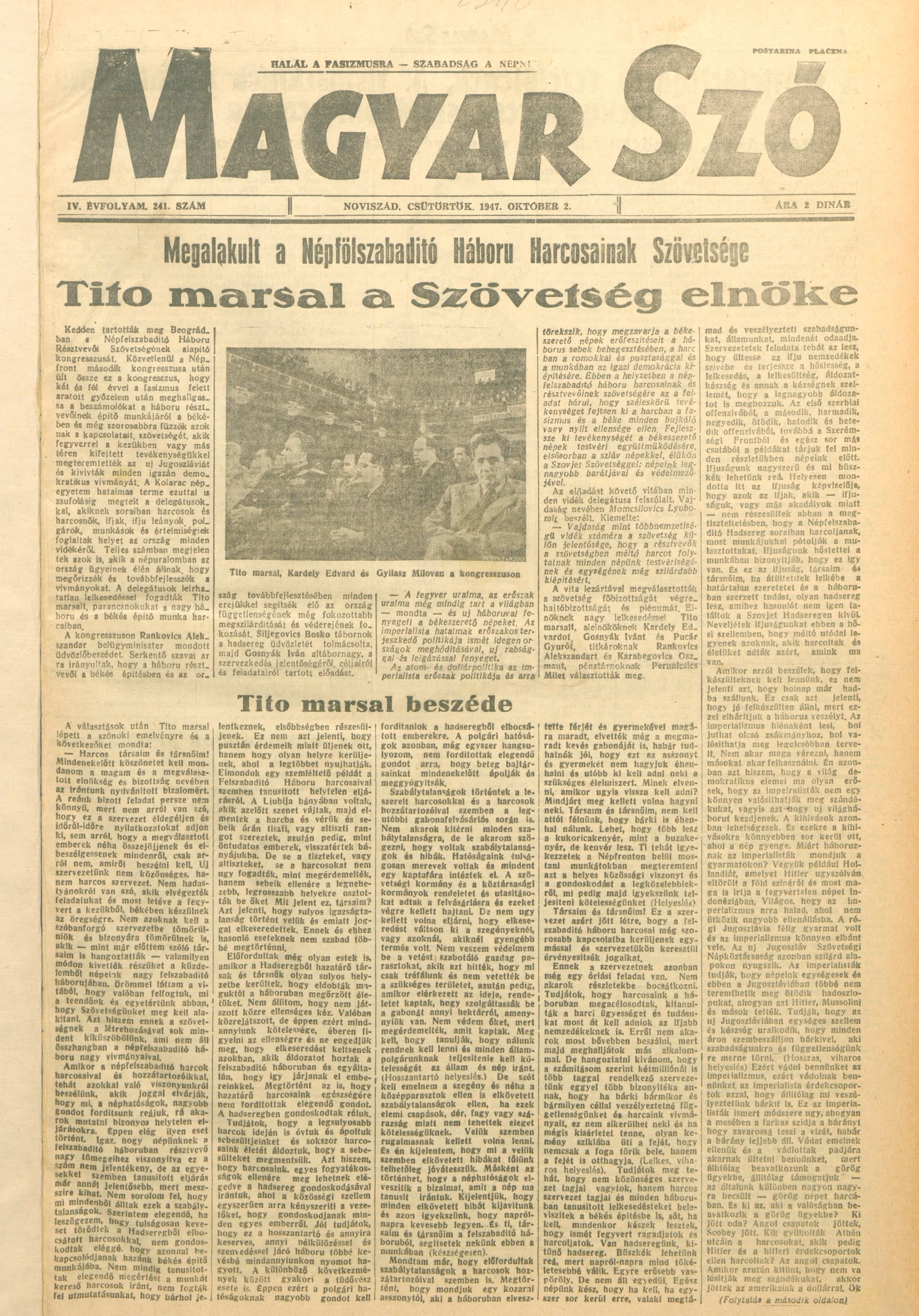 Magyar Szó, 4. évf. 1947. október 2. 241. sz. 1–8. oldal