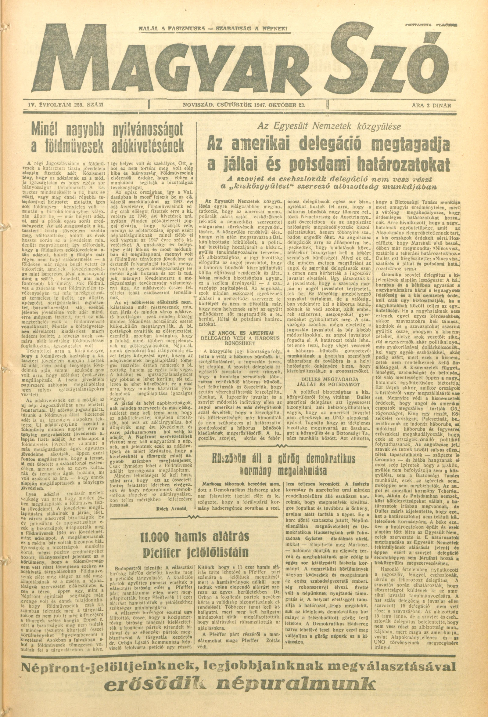 Magyar Szó, 4. évf. 1947. október 23. 259. sz. 1–8. oldal