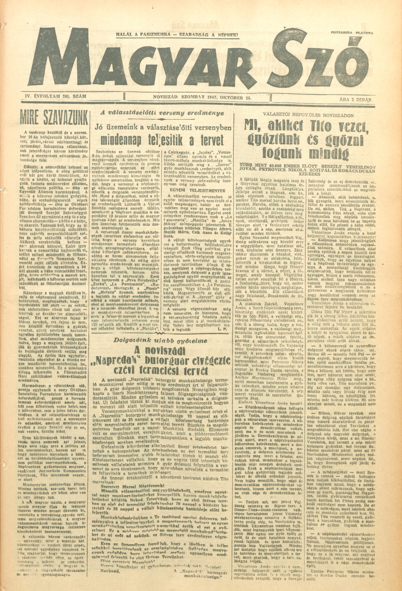 Magyar Szó, 4. évf. 1947. október 25. 261. sz. 1–6. oldal