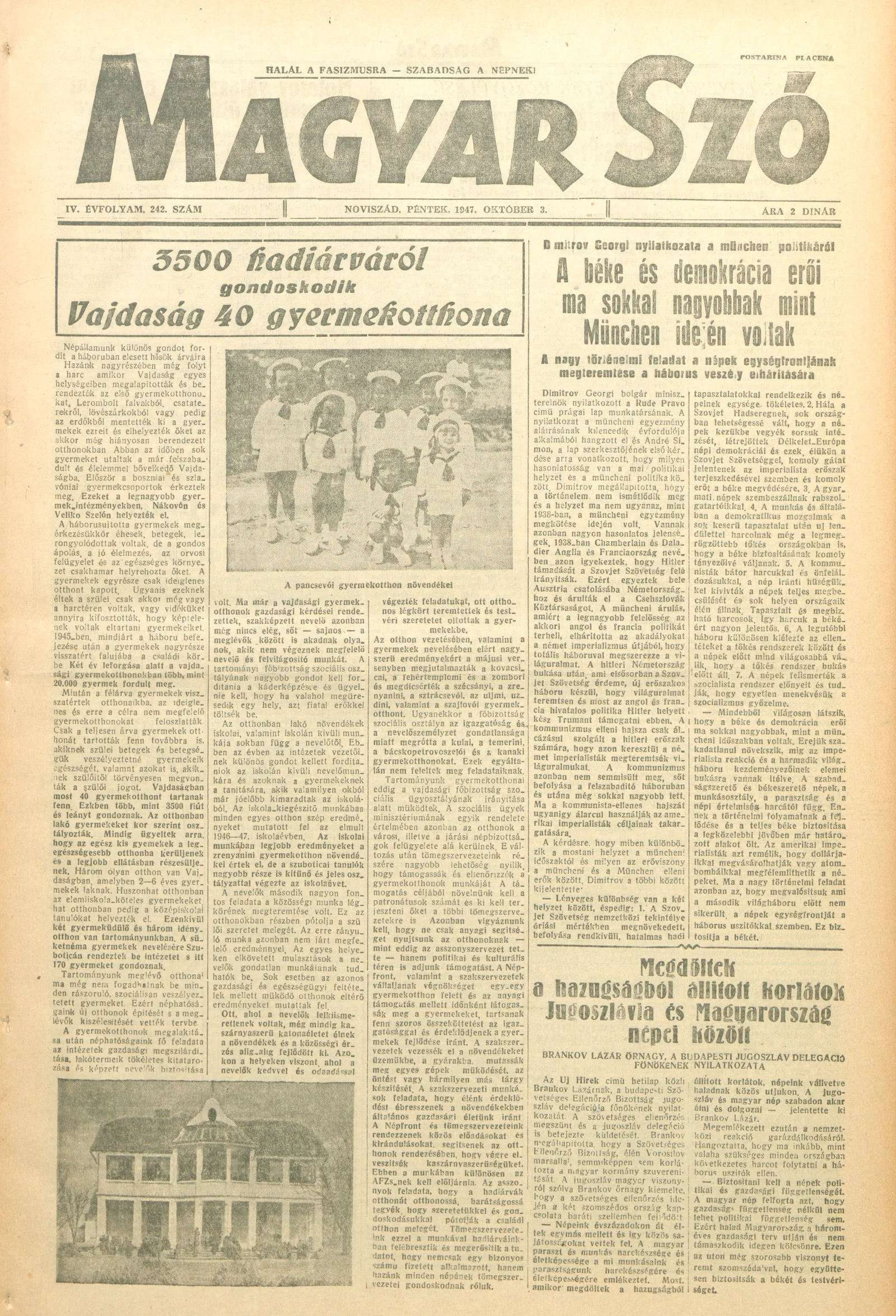 Magyar Szó, 4. évf. 1947. október 3. 242. sz. 1–6. oldal
