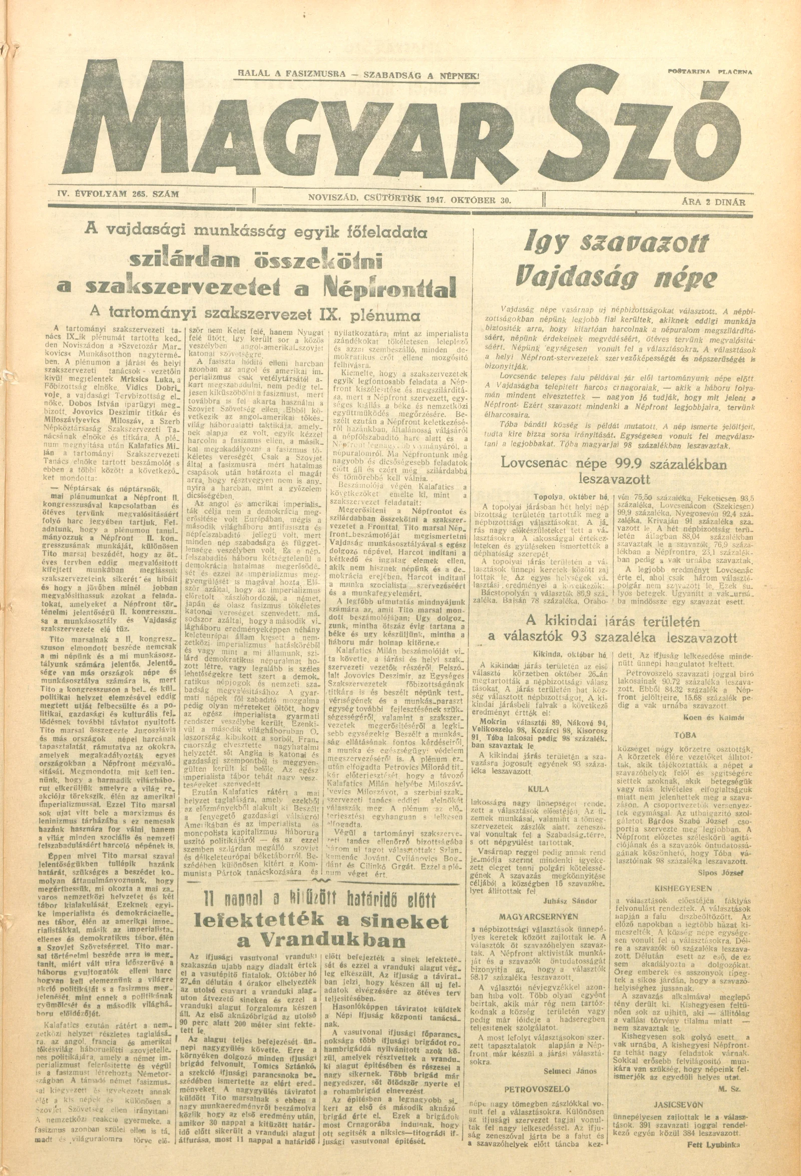 Magyar Szó, 4. évf. 1947. október 30. 265. sz. 1–8. oldal