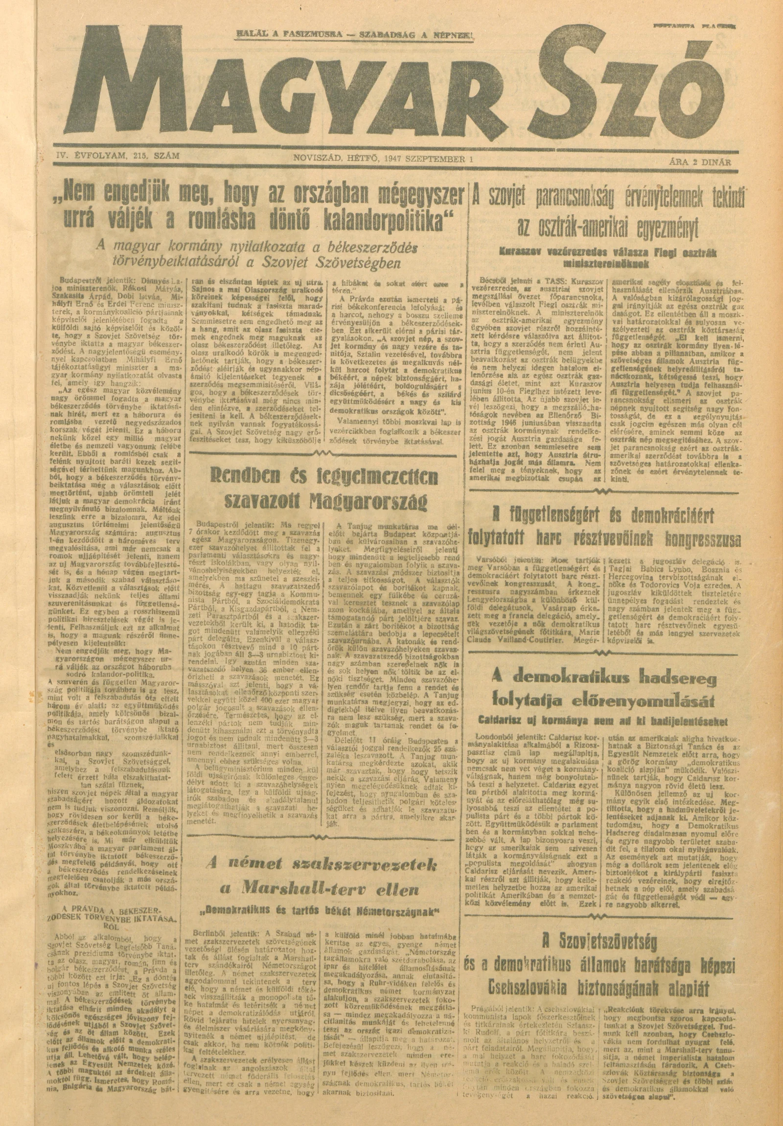 Magyar Szó, 4. évf. 1947. szeptember 1. 215. sz. 1–4. oldal