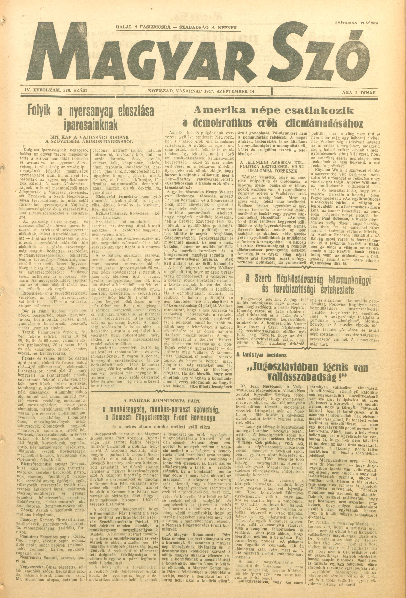 Magyar Szó, 4. évf. 1947. szeptember 14. 226. sz. 1–8. oldal