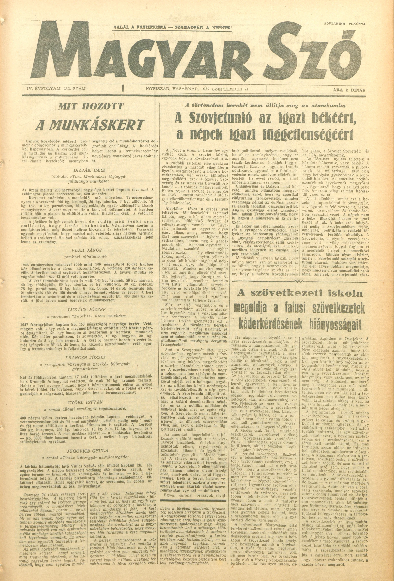 Magyar Szó, 4. évf. 1947. szeptember 21. 232. sz. 1–8. oldal