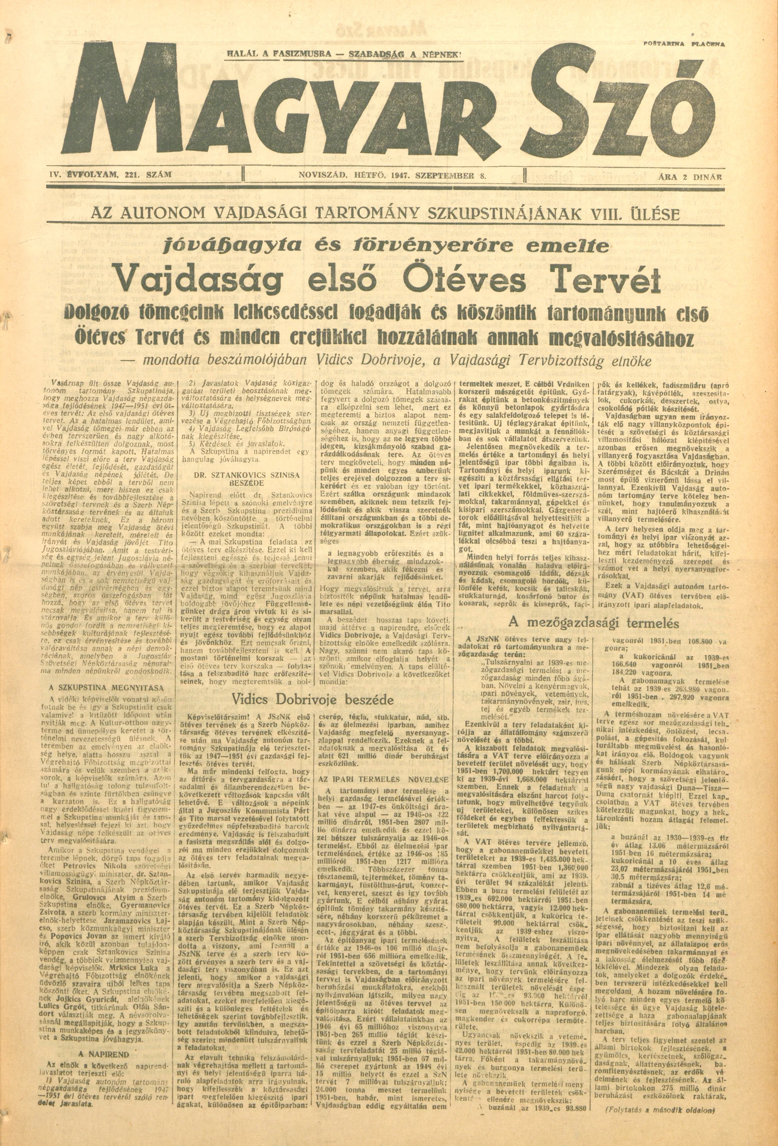 Magyar Szó, 4. évf. 1947. szeptember 8. 221. sz. 1–6. oldal