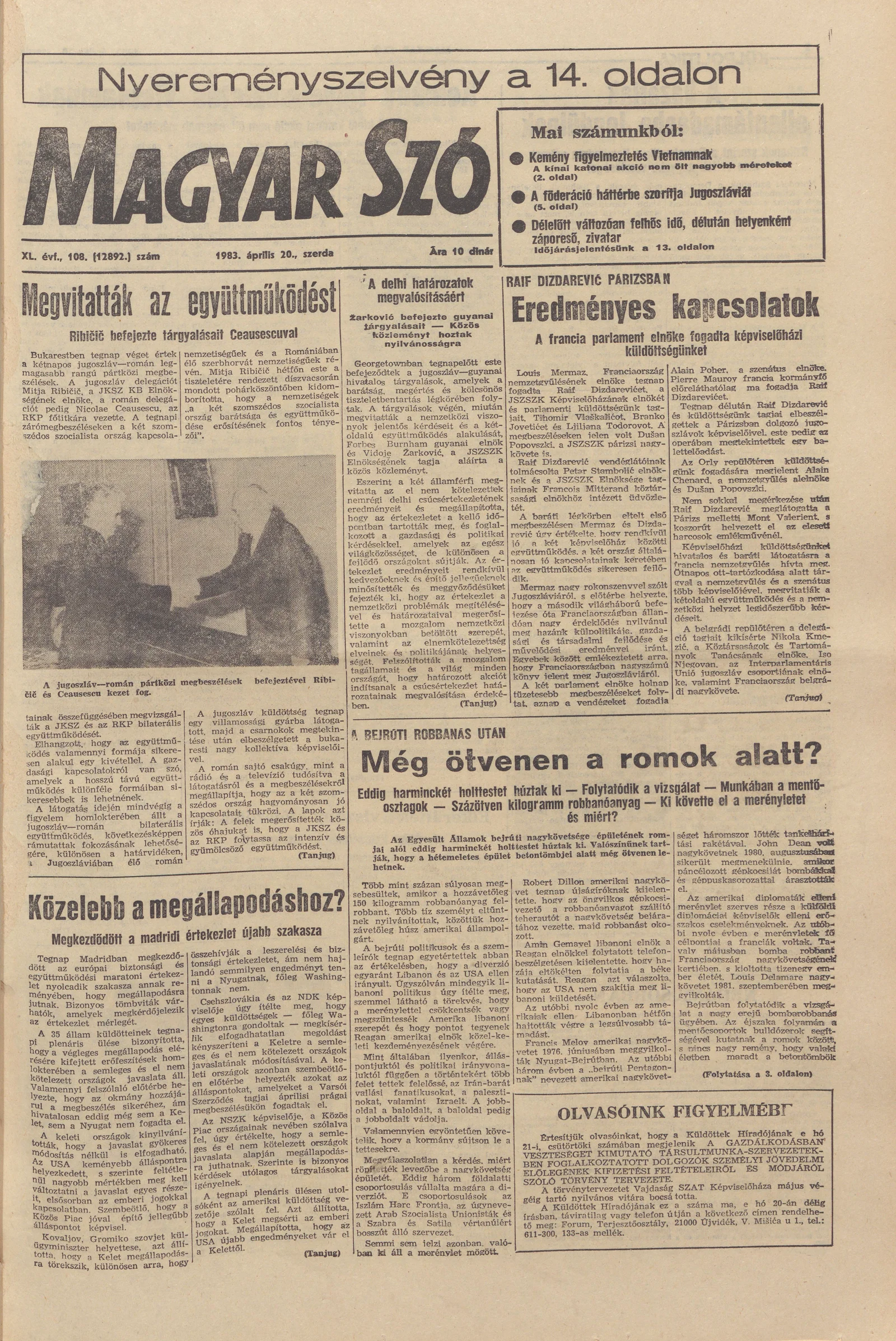 Magyar Szó, 40. évf. 1983. április 20. 108. sz. 1–24. oldal