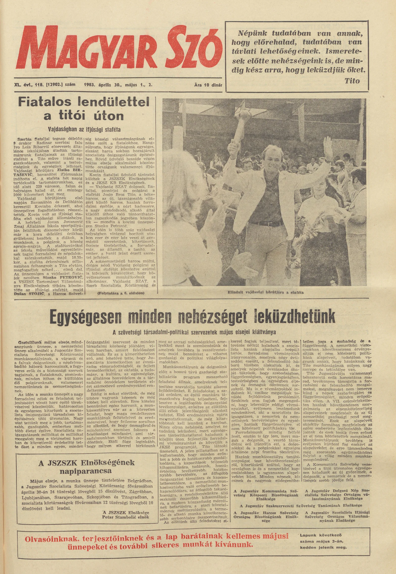 Magyar Szó, 40. évf. 1983. április 30. – május 2. 118. sz. 1–36. oldal