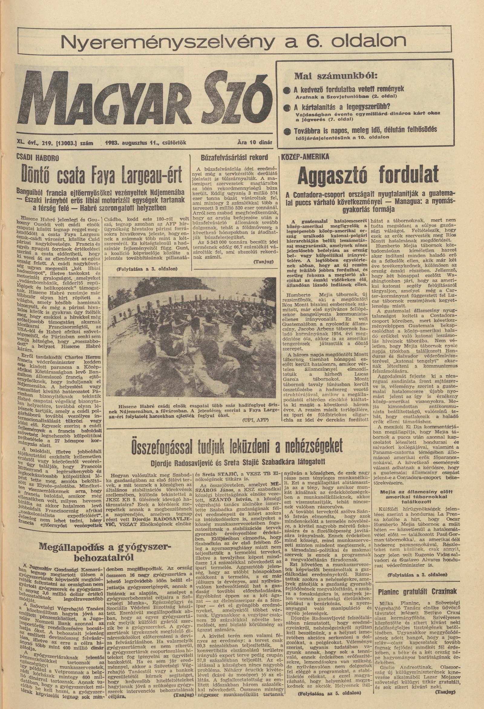 Magyar Szó, 40. évf. 1983. augusztus 11. 219. sz. 1–20. oldal