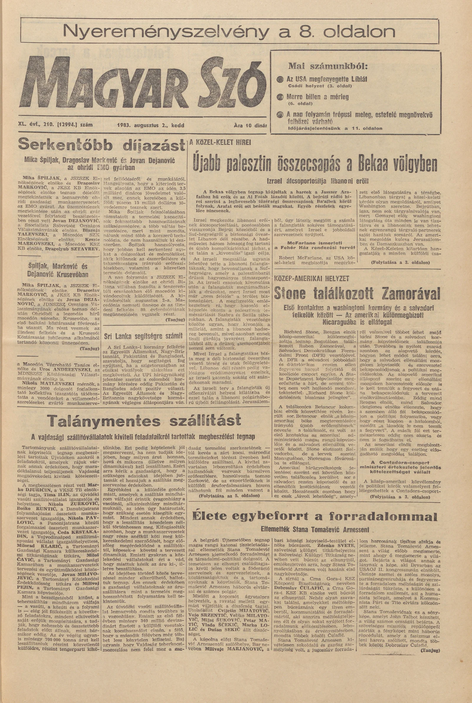 Magyar Szó, 40. évf. 1983. augusztus 2. 210. sz. 1–20. oldal