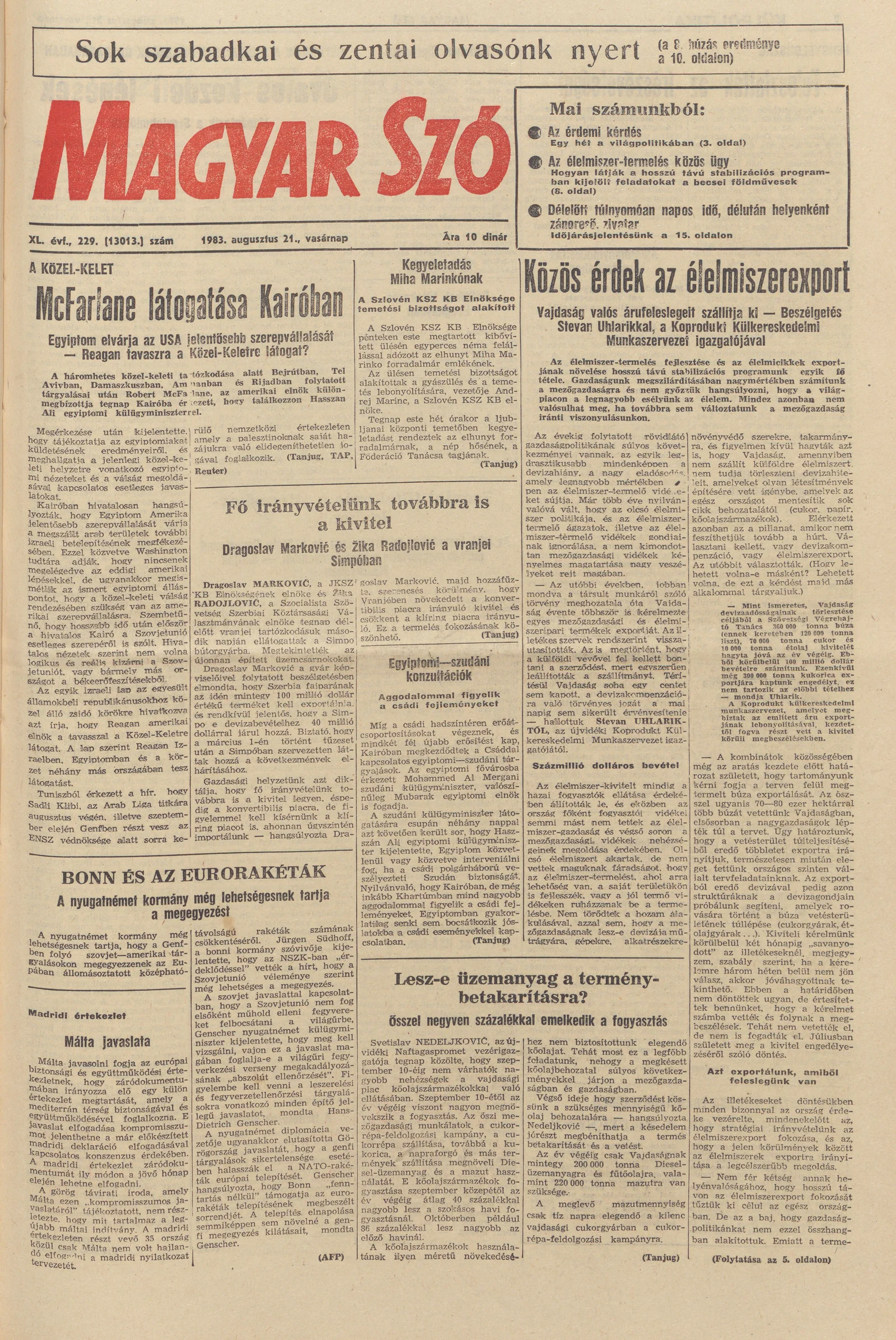 Magyar Szó, 40. évf. 1983. augusztus 21. 229. sz. 1–28. oldal