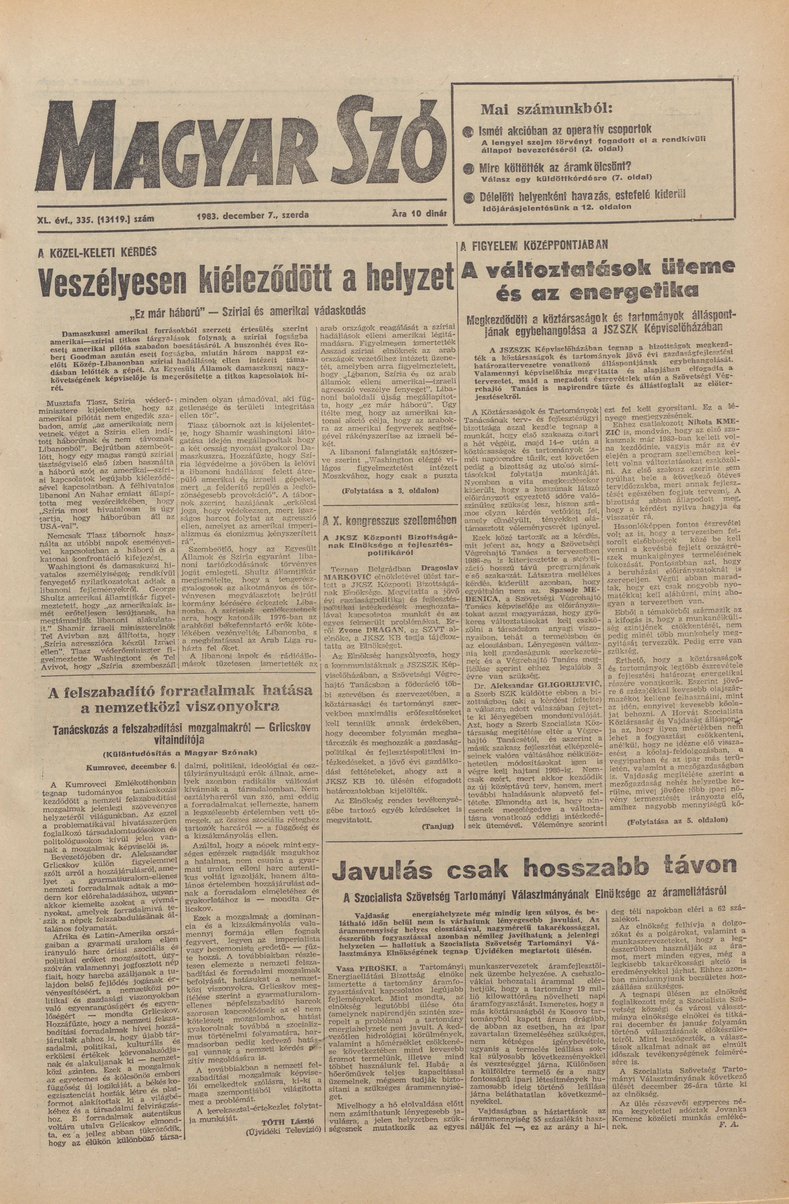 Magyar Szó, 40. évf. 1983. december 7. 335. sz.