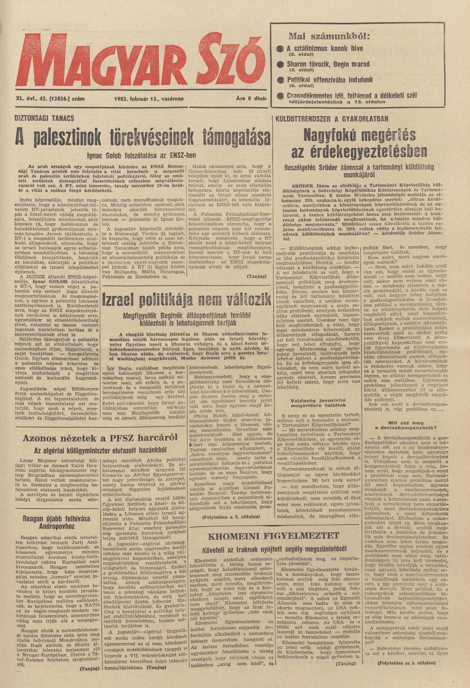 Magyar Szó, 40. évf. 1983. február 13. 42. sz. 1–28. oldal