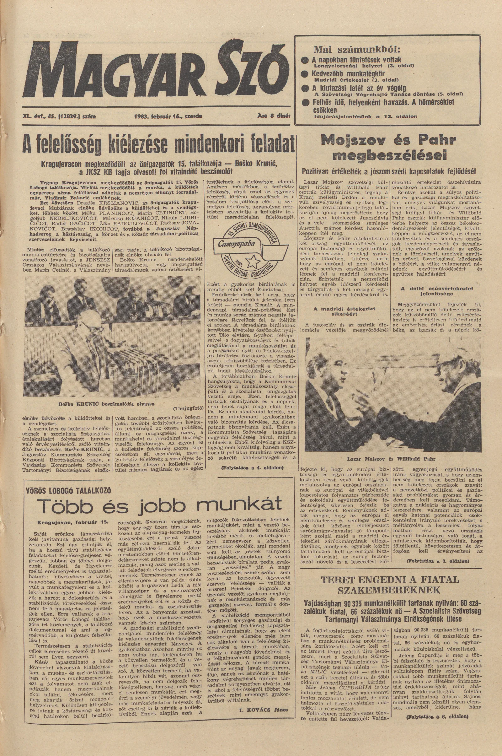 Magyar Szó, 40. évf. 1983. február 16. 45. sz. 1–24. oldal