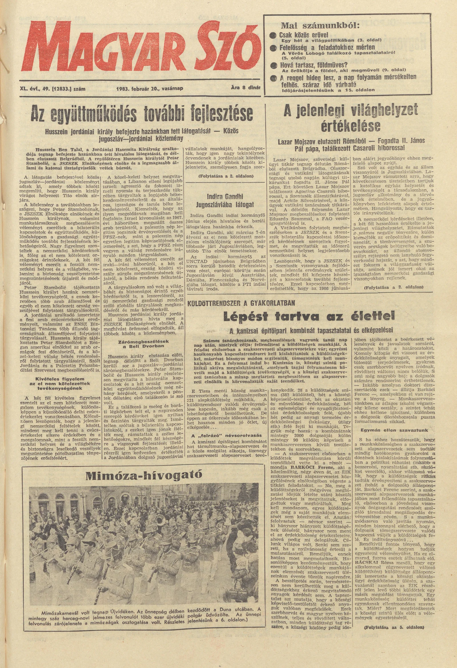 Magyar Szó, 40. évf. 1983. február 20. 49. sz. 1–28. oldal